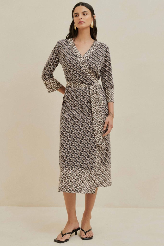 Vestido Envelope Midi Estampado em Fluity Areia