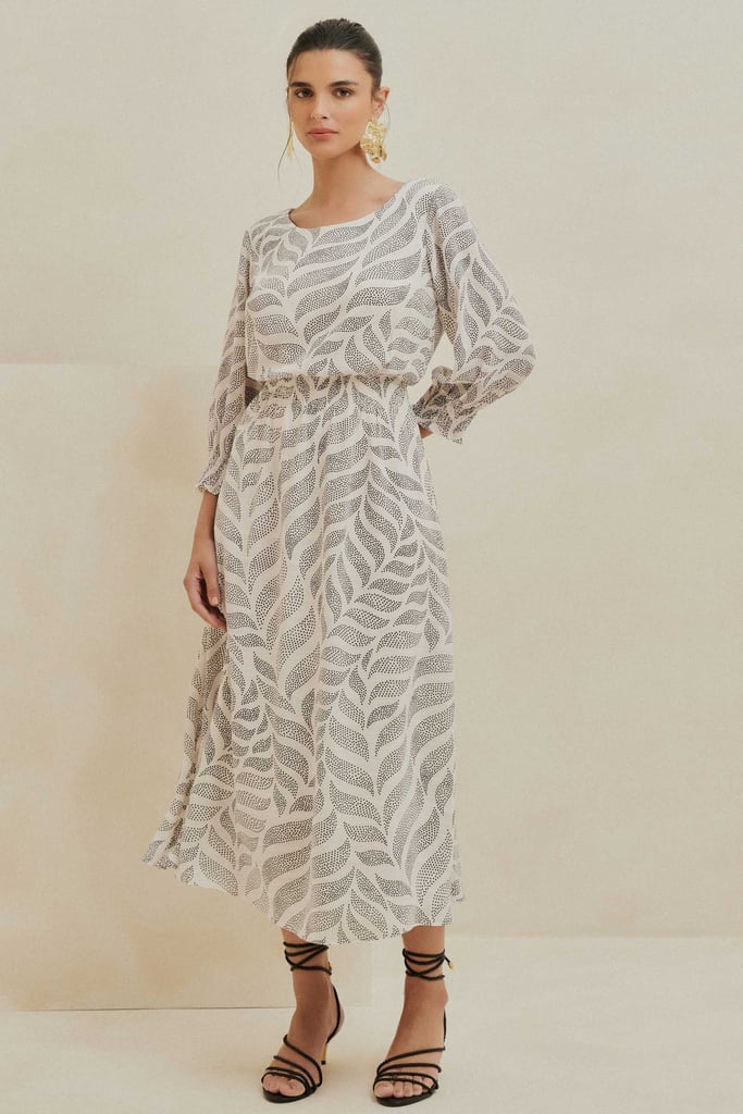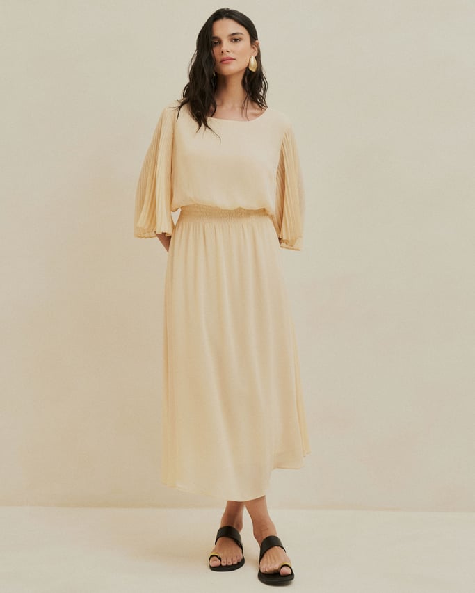 Vestido Midi em Jacquard Baunilha
