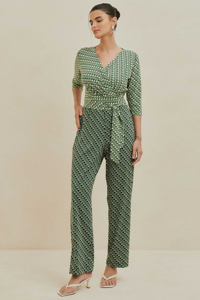 Macacão Estampado em Fluity com Faixa Verde