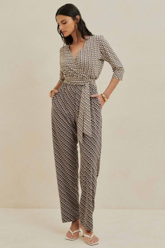 Macacão Estampado em Fluity com Faixa Areia