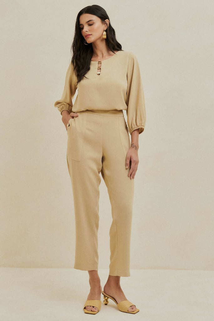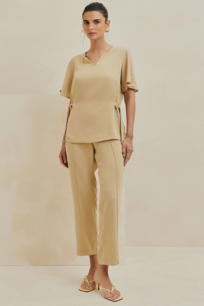Conjunto em Crepe com Detalhes de Fivela Areia