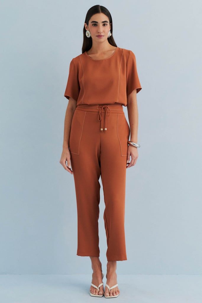 Conjunto em Crepe Liso com Pespontos Caramelo