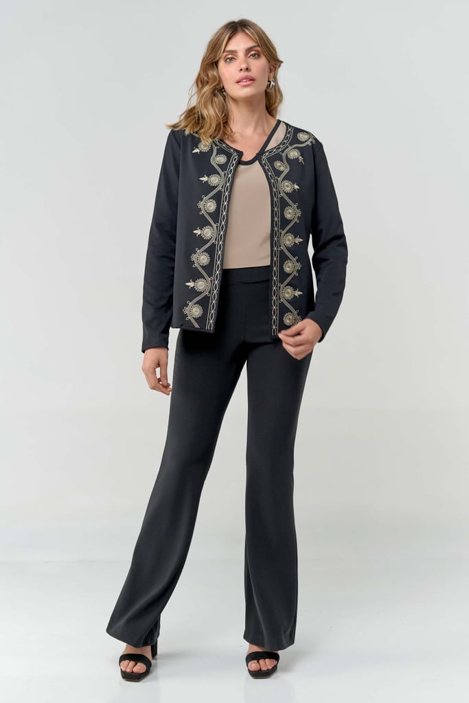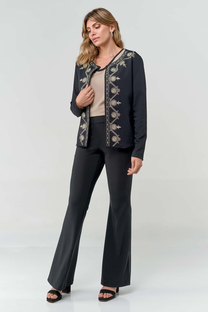 Casaco Manga Longa com Bordado na Frente