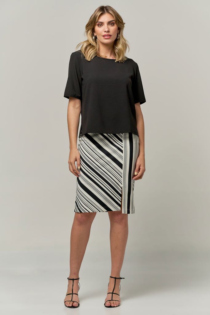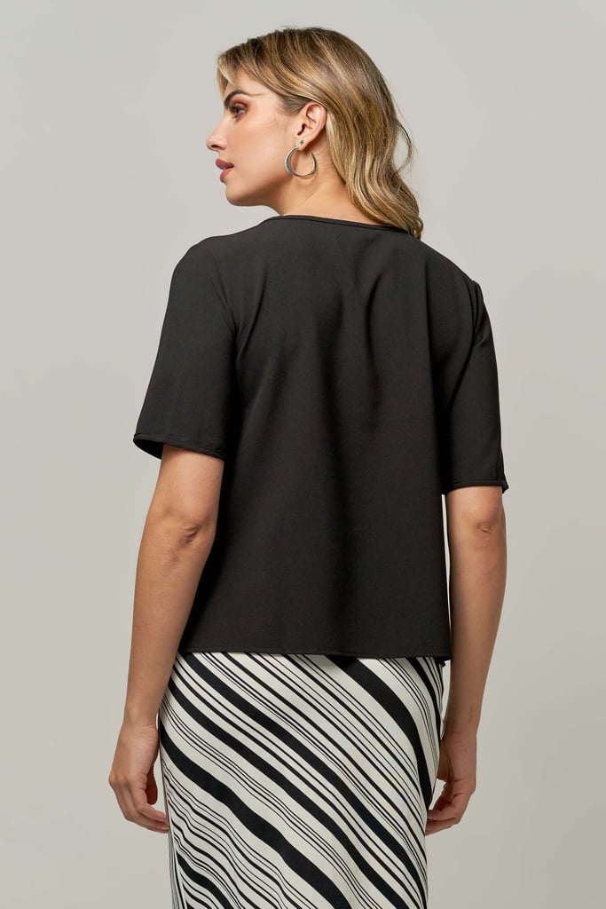 Blusa basica de crepe, decote redondo e manga curta