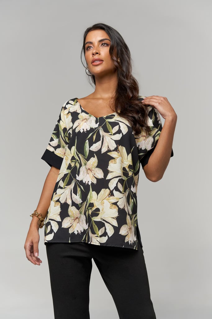 Blusa Frente Estampada Decote V