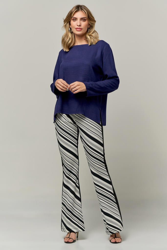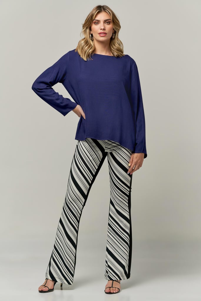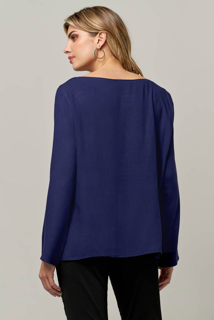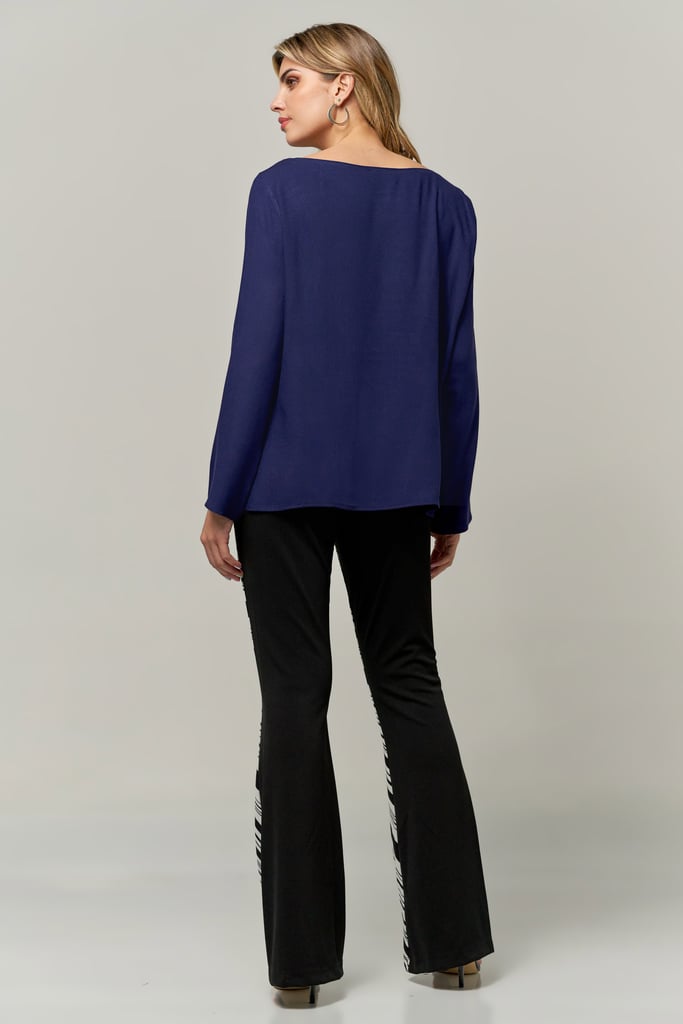 Blusa de crepe, decote redondo, manga longa e abertura lateral