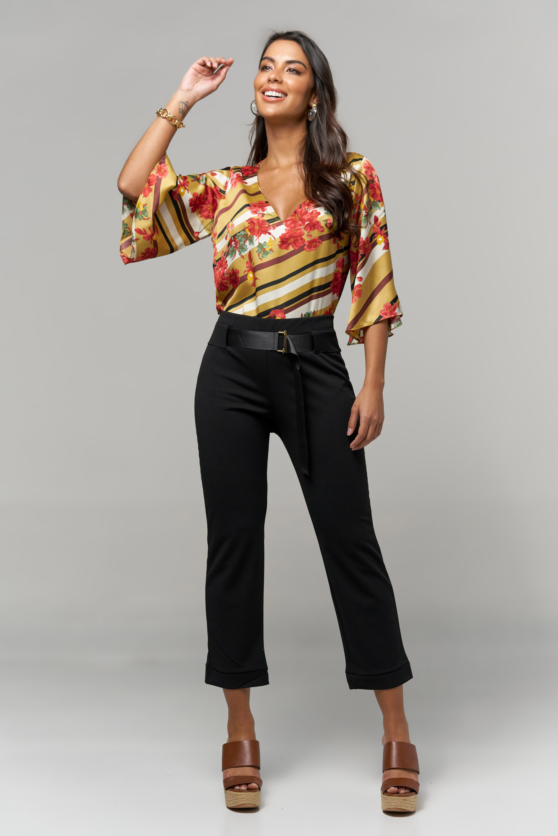 Calça Lisa com Cinto de Gorgurão