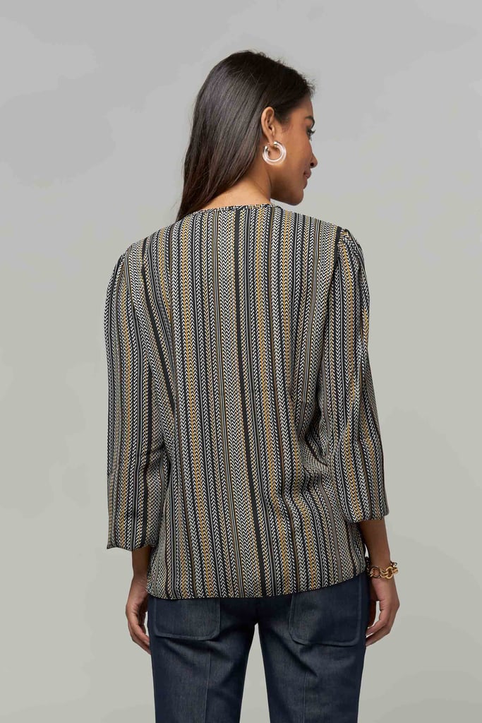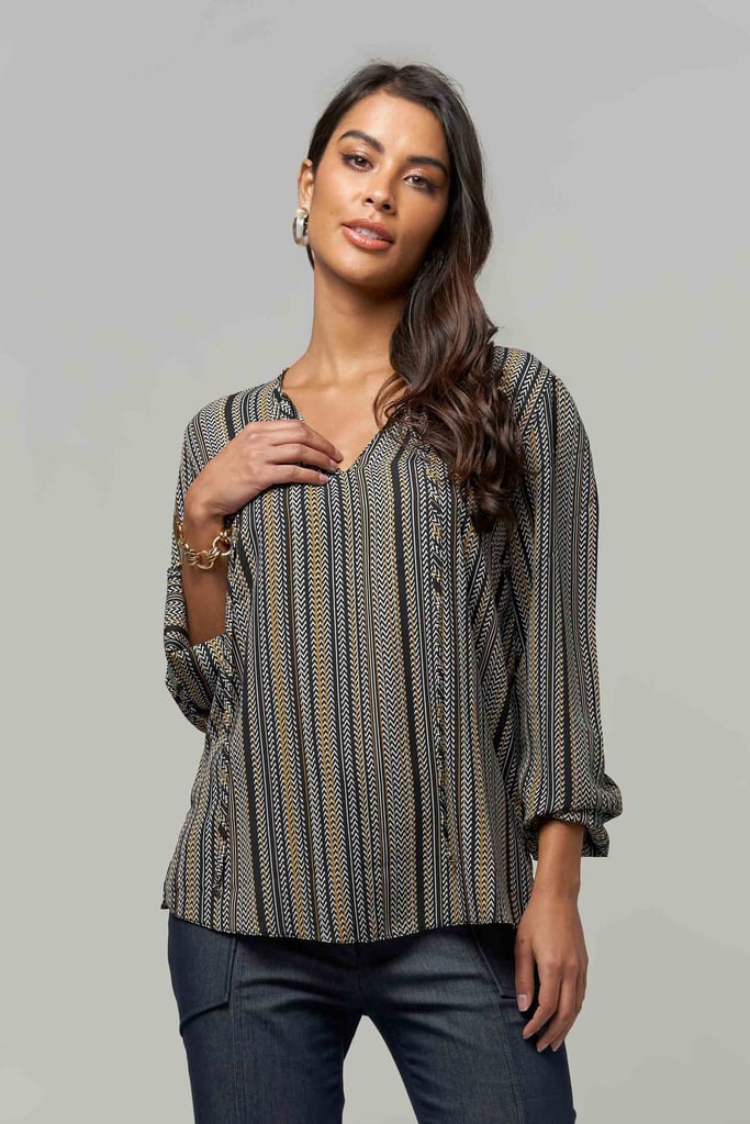 Blusa Estampada Decote V com Elastex no Punho