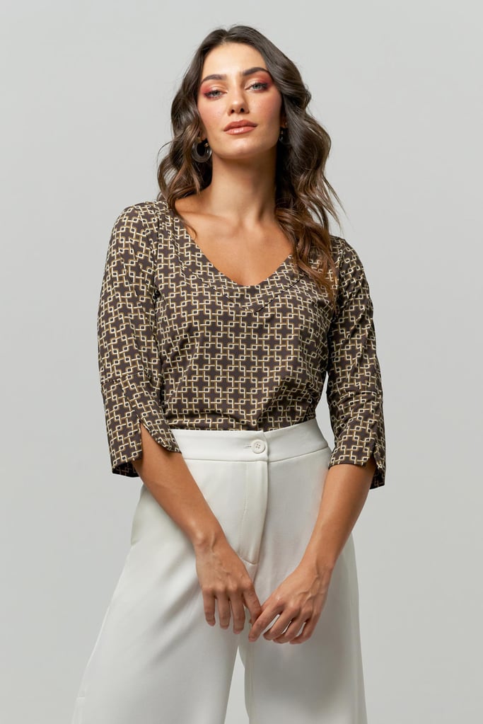 Blusa Estampada Decote V