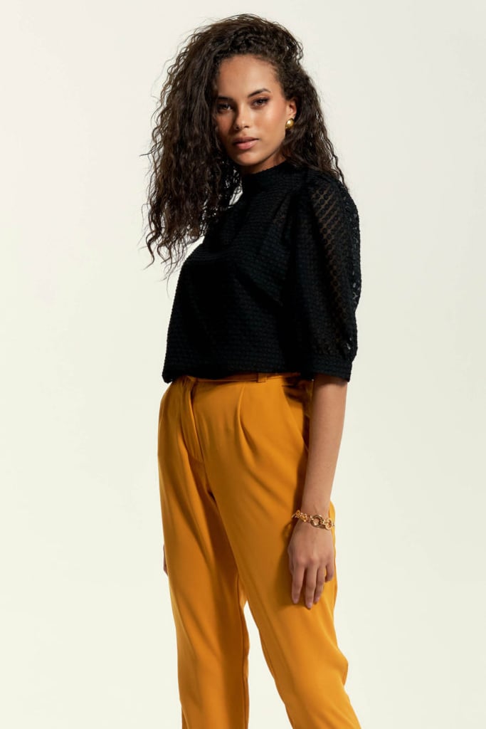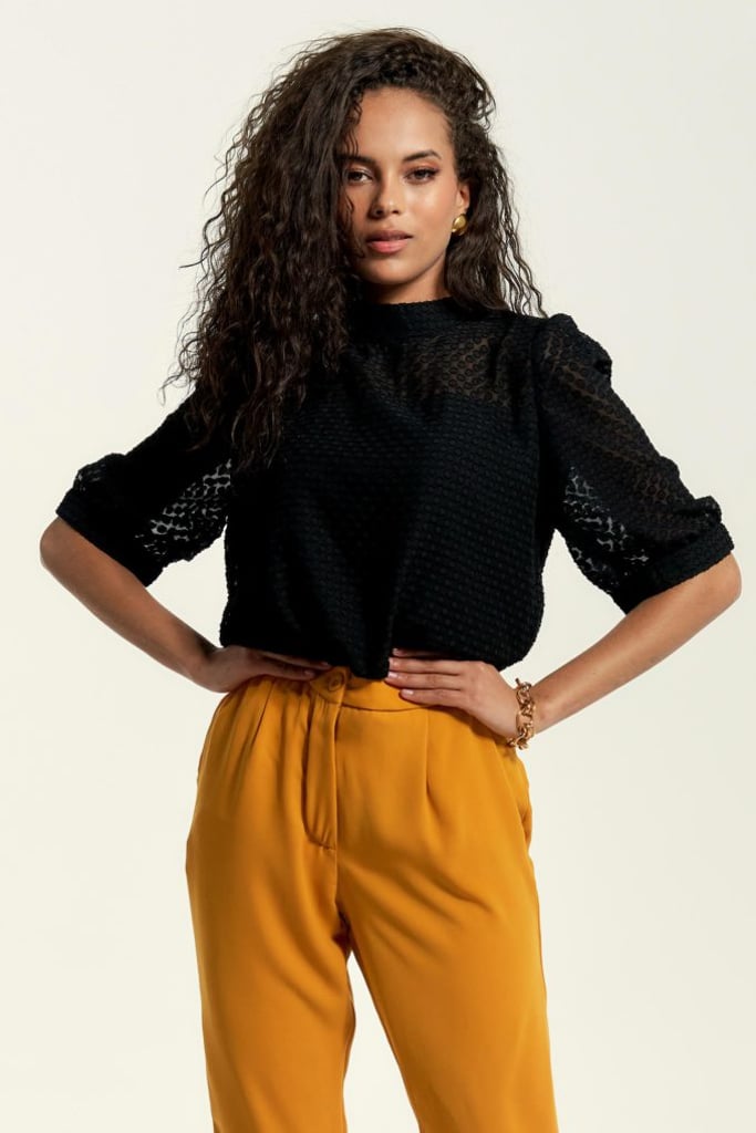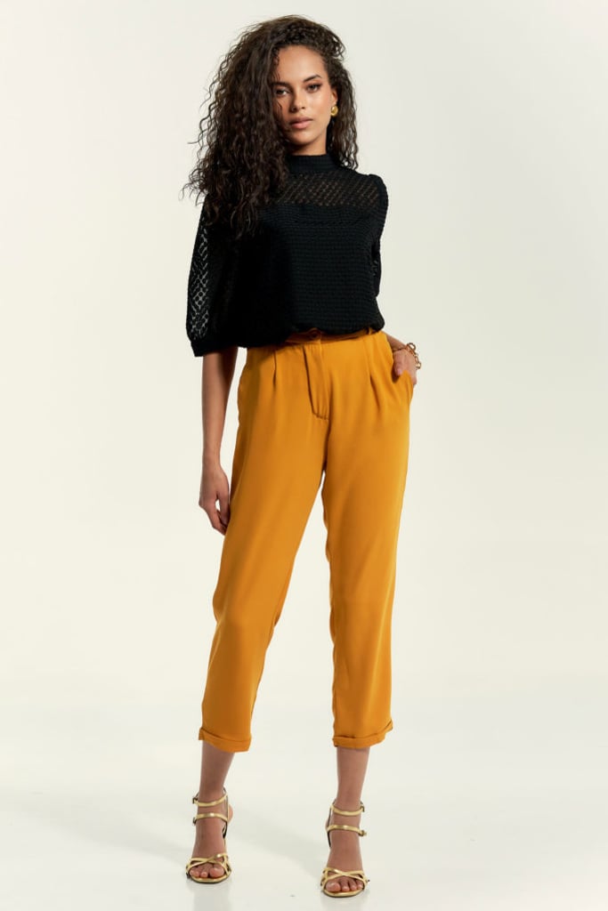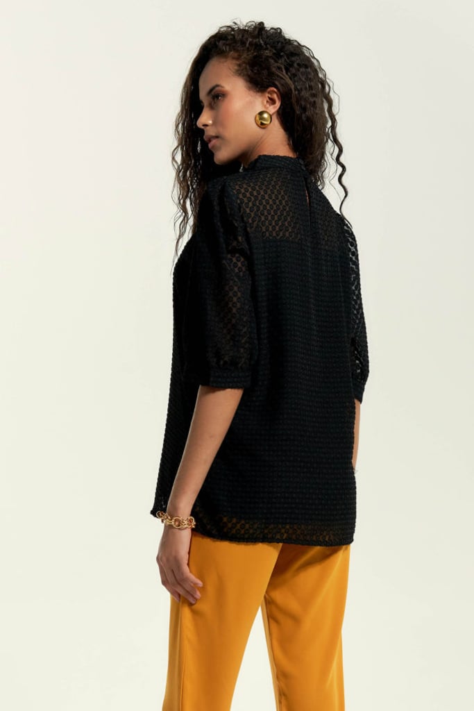 Blusa devorê, gola alta e manga 3/4. Possui forro.