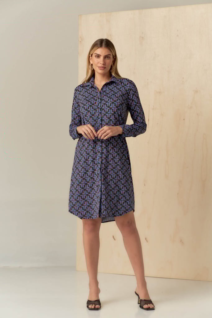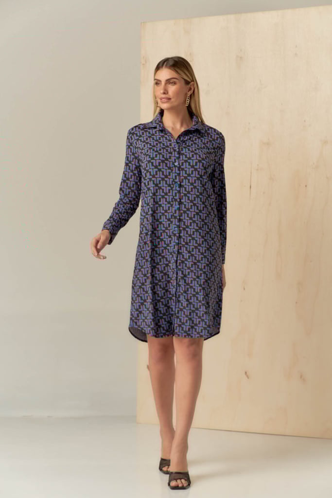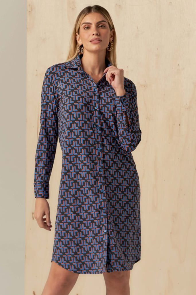 Vestido Chemise confeccionado em Fluity. Possui gola de camisa, vista com botões, manga comprida com punho e barra levemente arredondada. Detalhe de prega nas costas. Peça que se encaixa perfeitamente no estilo comfy chic.