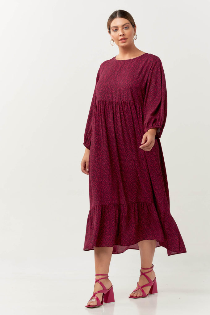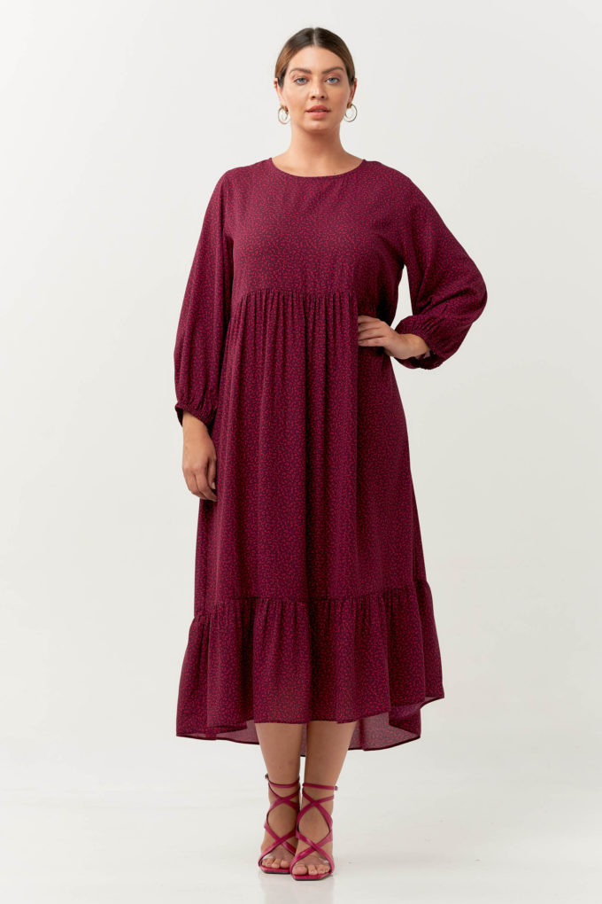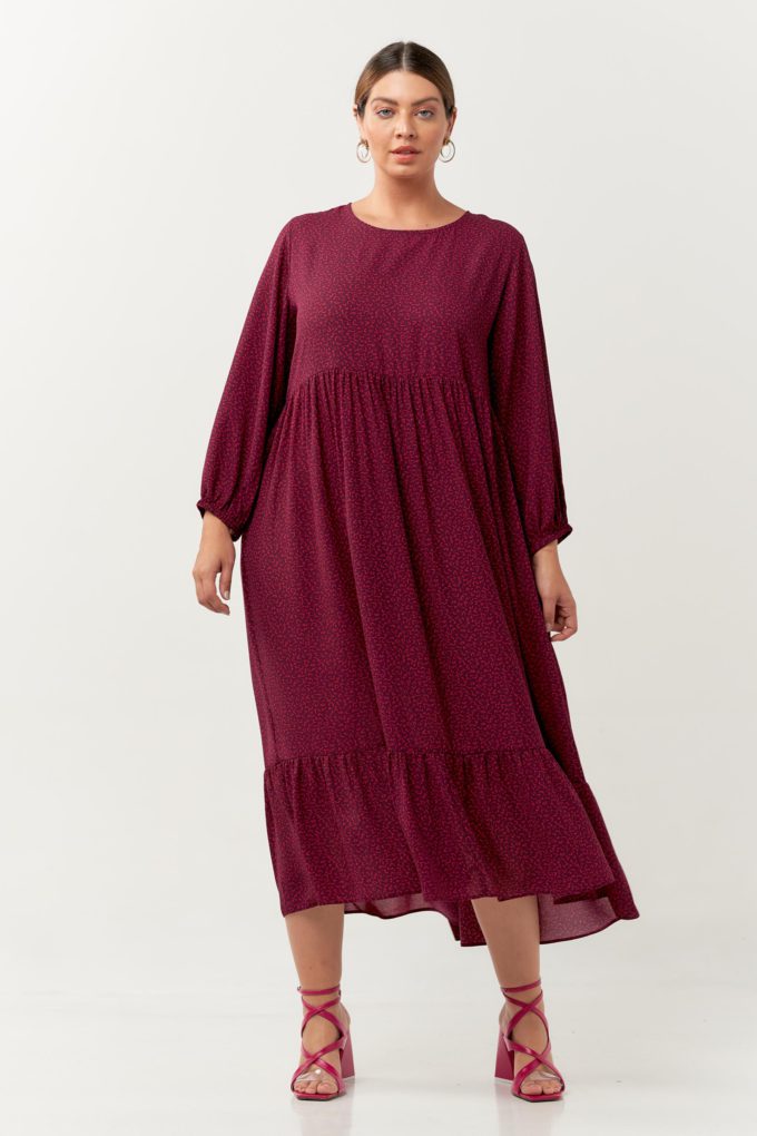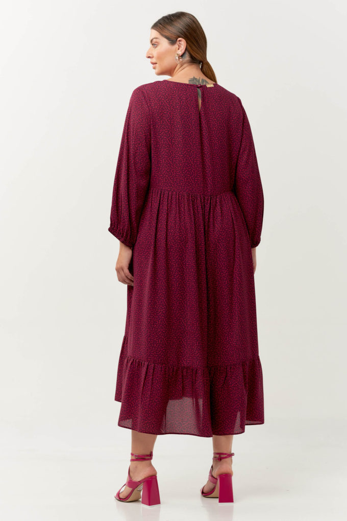 Vestido com camadas confeccionado no crepe estampado. Possui modelagem fluida com decote redondo, mangas 3/4 com elástico no comprimento midi. A peça é super versátil! Combine com tênis ou uma rasteirinha e você estará confortável e elegante.