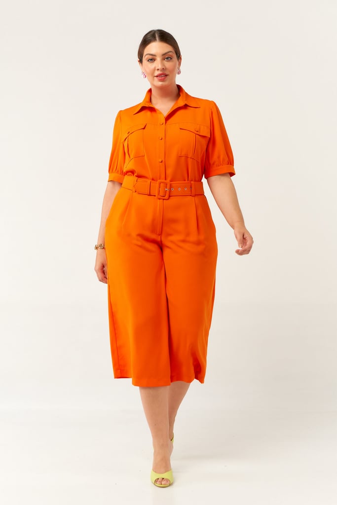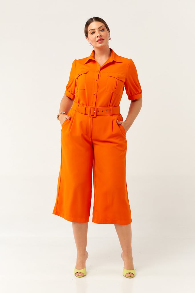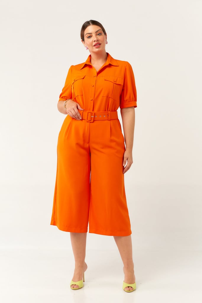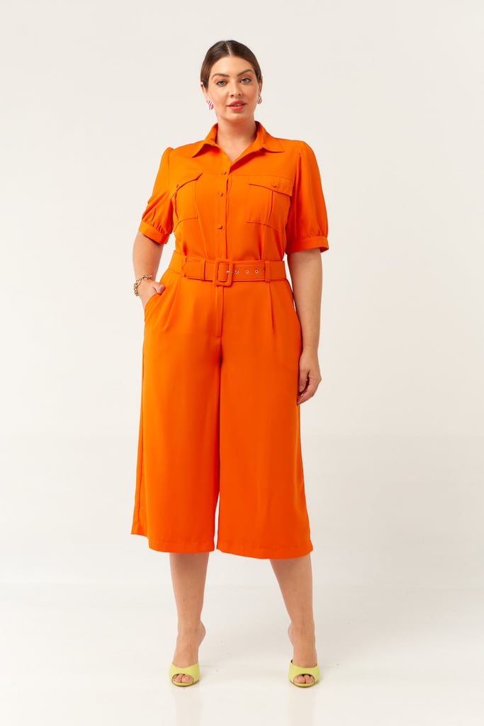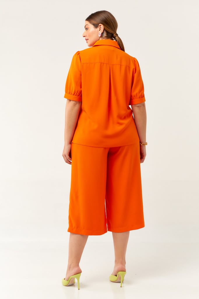 Conjunto confeccionado em crepe encorpado. Blusa possui gola de camisa, vista com botões, bolsos frontais e manga curta com punho e leve franzido no ombro. Calça traz nossa modelagem pantacourt, cós com passante e elástico nas costas para maior conforto fechado por zíper e botão frontais. Acompanha cinto do mesmo tecido para arrematar o look.