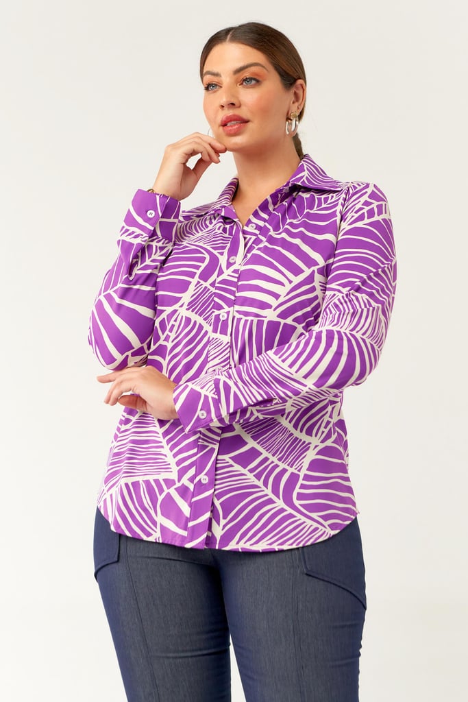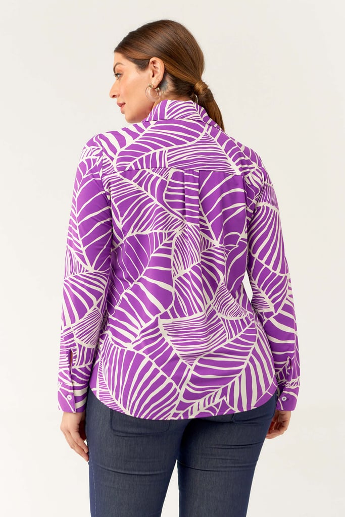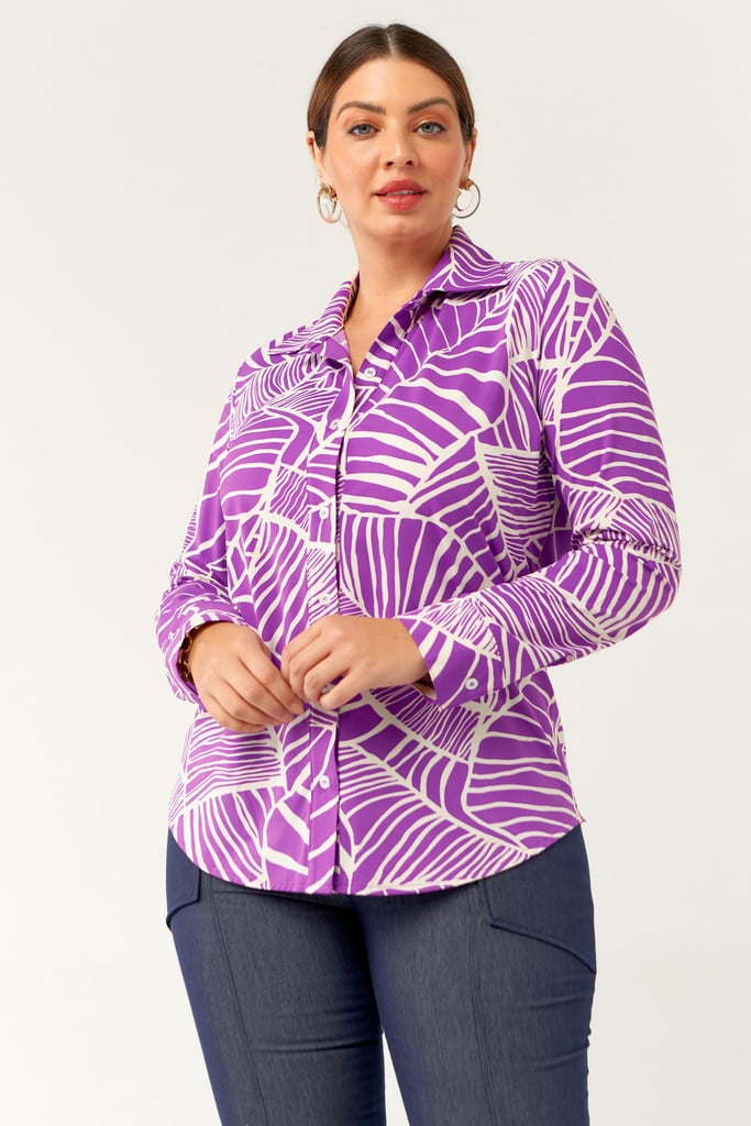Camisa confeccionada em tecido de Fluity com estampa exclusiva. Possui gola de camisa, vista, manga comprida com punho fechada por botões frontais