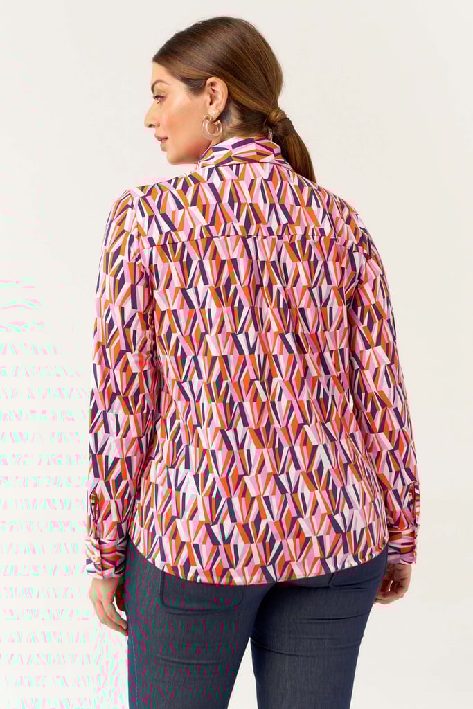 Camisa confeccionada em tecido de Fluity com estampa exclusiva. Possui gola de camisa, vista, manga comprida com punho fechada por botões frontais