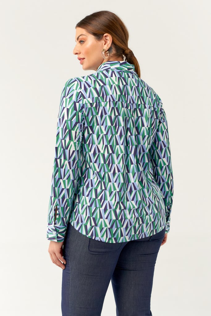 Camisa confeccionada em tecido de Fluity com estampa exclusiva. Possui gola de camisa, vista, manga comprida com punho fechada por botões frontais