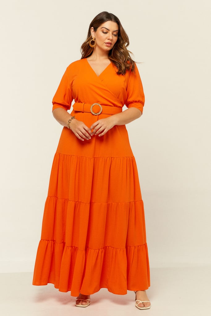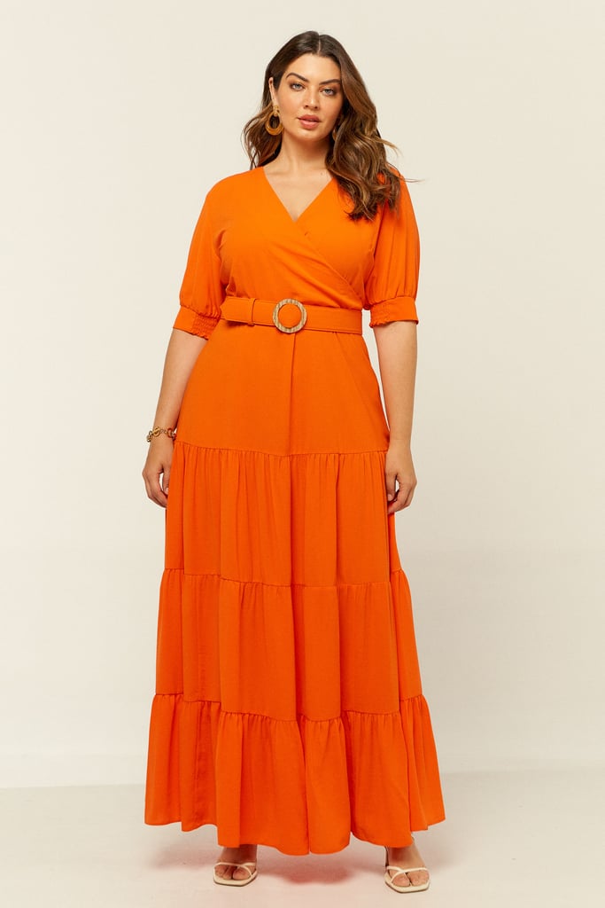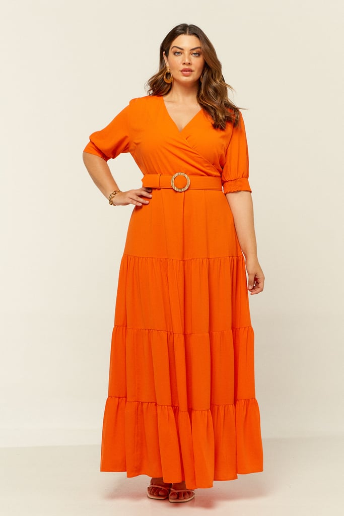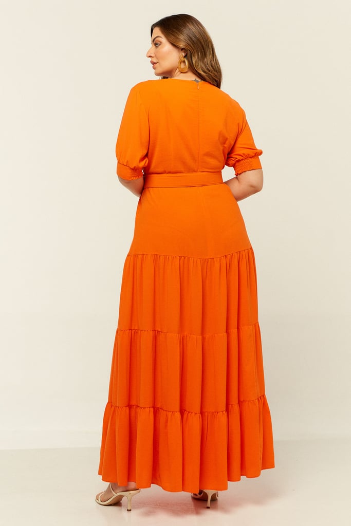 Vestido longo em camadas confeccionado em crepe. Possui decote transpassado e manga 3/4 com terminação de lastex. Fechamento nas costas por zíper. Acompanha cinto com aviamento de palha. Vestido chique e perfeito para as festas de fim de ano!