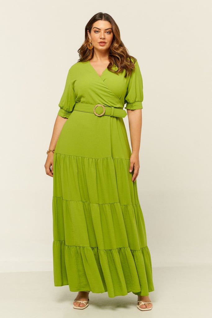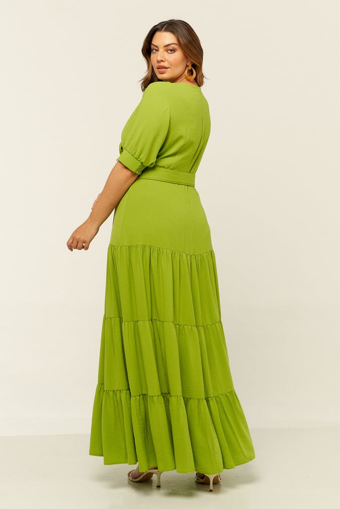 Vestido longo em camadas confeccionado em crepe. Possui decote transpassado e manga 3/4 com terminação de lastex. Fechamento nas costas por zíper. Acompanha cinto com aviamento de palha. Vestido chique e perfeito para as festas de fim de ano!