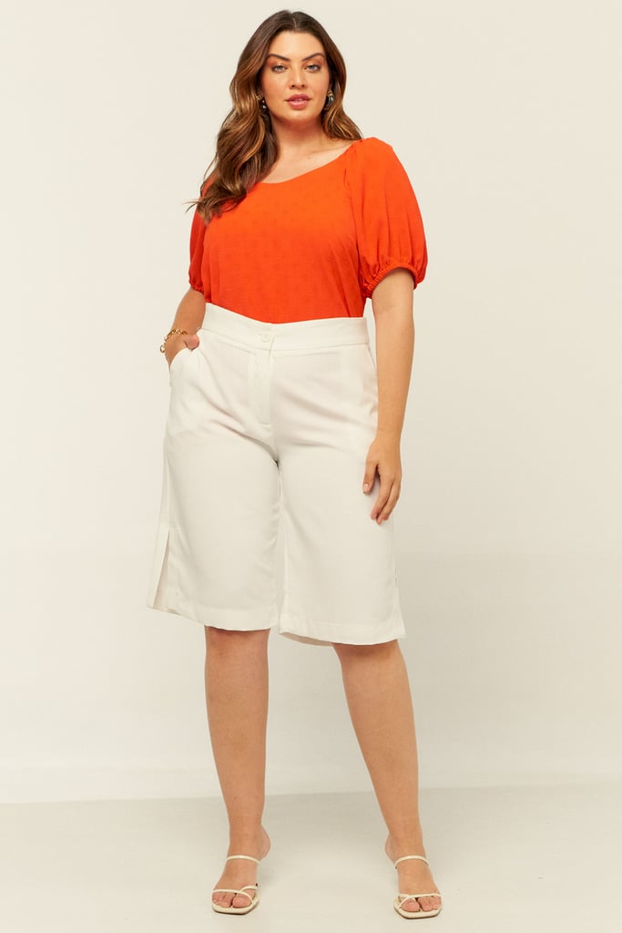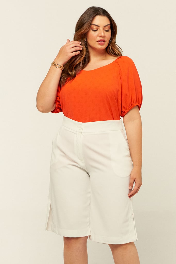 Blusa confeccionada em crepe maquinetado. Possui decote versátil podendo ser usado ombro a ombro e manga raglan com elástico na barra.