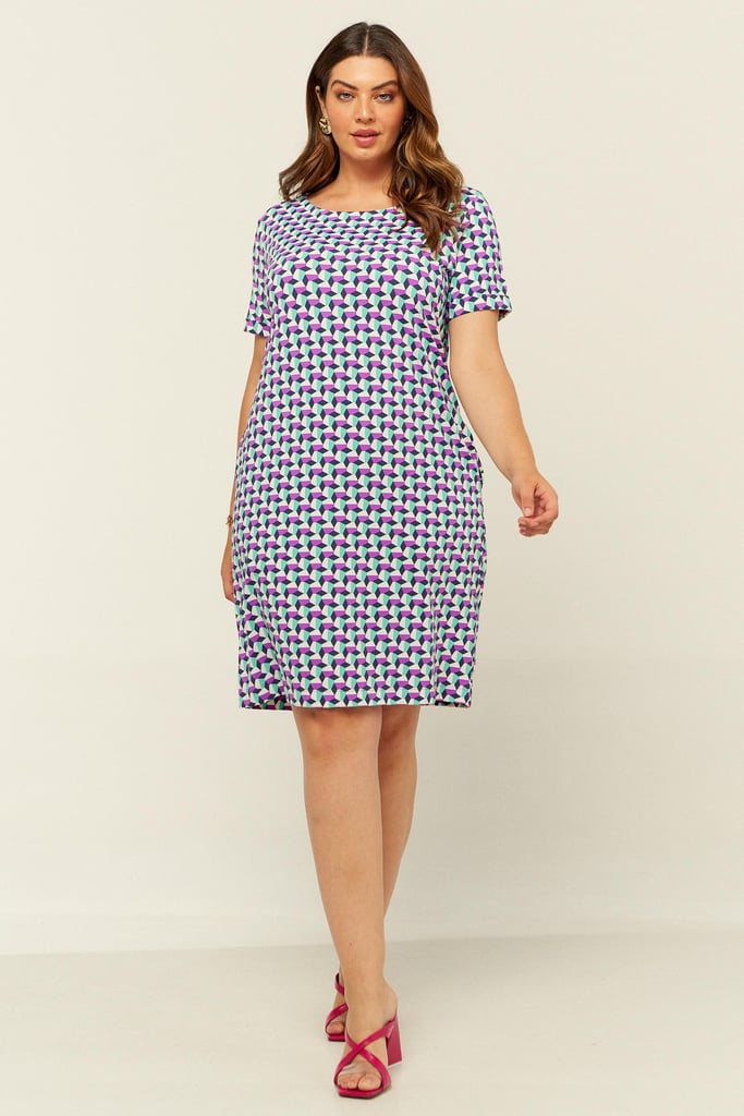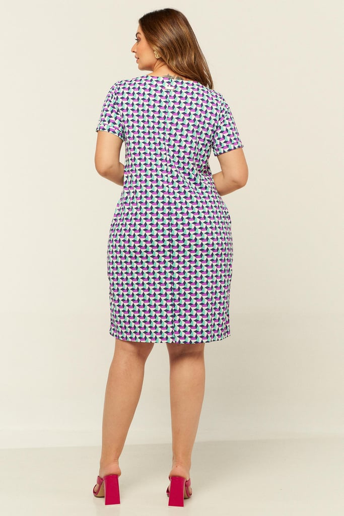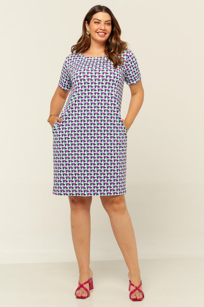 Vestido estilo tubo confeccionado em Fluity. Possui decote redondo, manga curto e bolsos laterais.