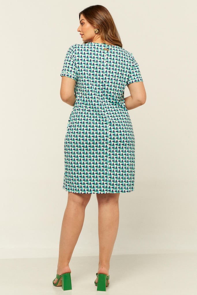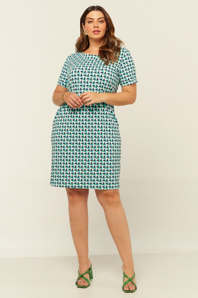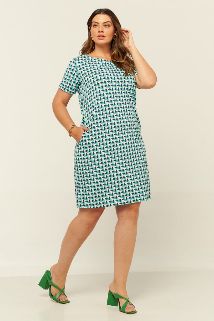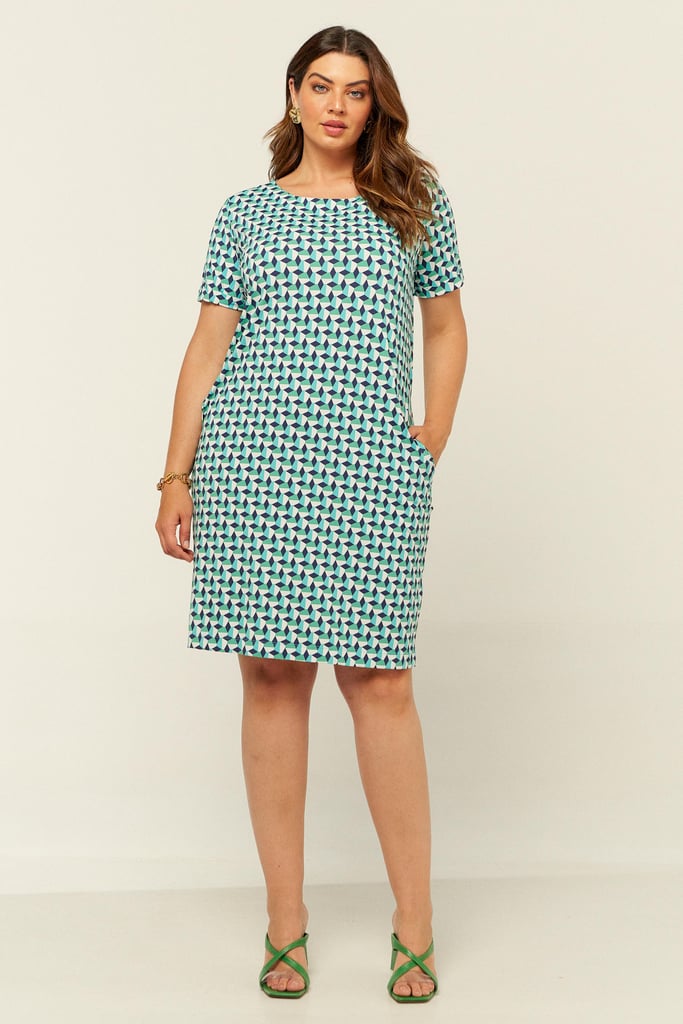 Vestido estilo tubo confeccionado em Fluity. Possui decote redondo, manga curto e bolsos laterais.