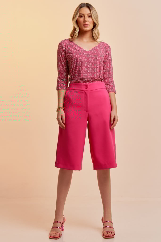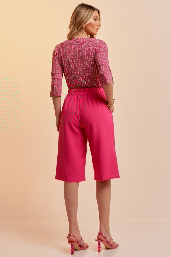 Bermuda de alfaiataria confeccionada em tecido de crepe liso encorpado. A peça traz nossa modelagem clássica reta com bolsos e abertura laterais e fechamento frontal por zíper e botão. Cós com elástico nas costas para maior conforto. Perfeita para os dias mais quentes!