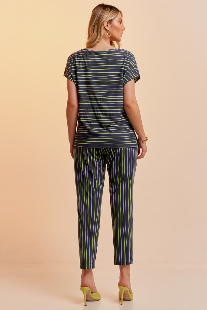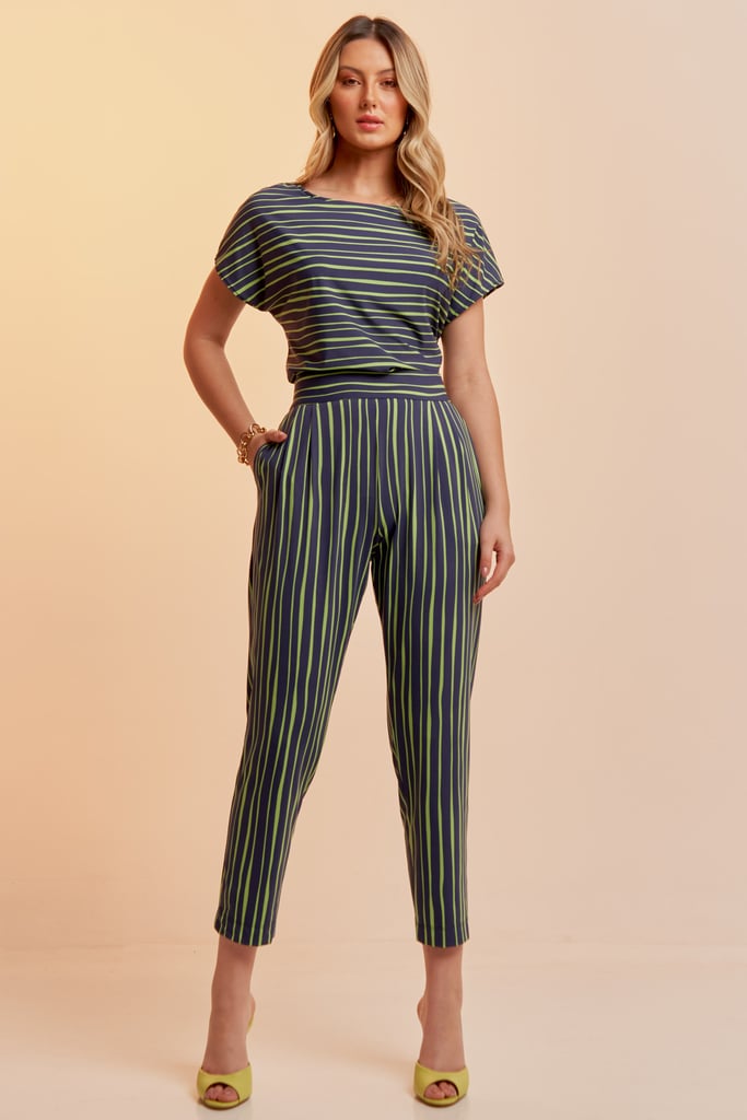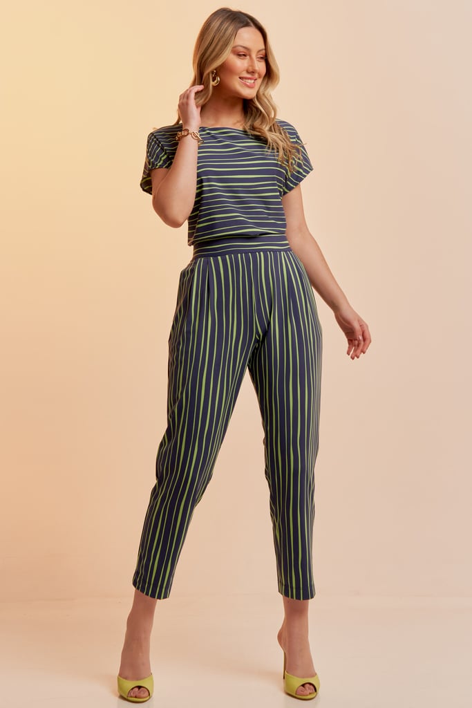 Conjunto de blusa e calça confeccionado em Fluity com estamparia exclusiva. Blusa possui decote redondo e manga curta. Calça traz nossa modelagem clássica reta com pregas frontais, bolsos laterais e cós com elástico nas costas para garantir conforto à peça