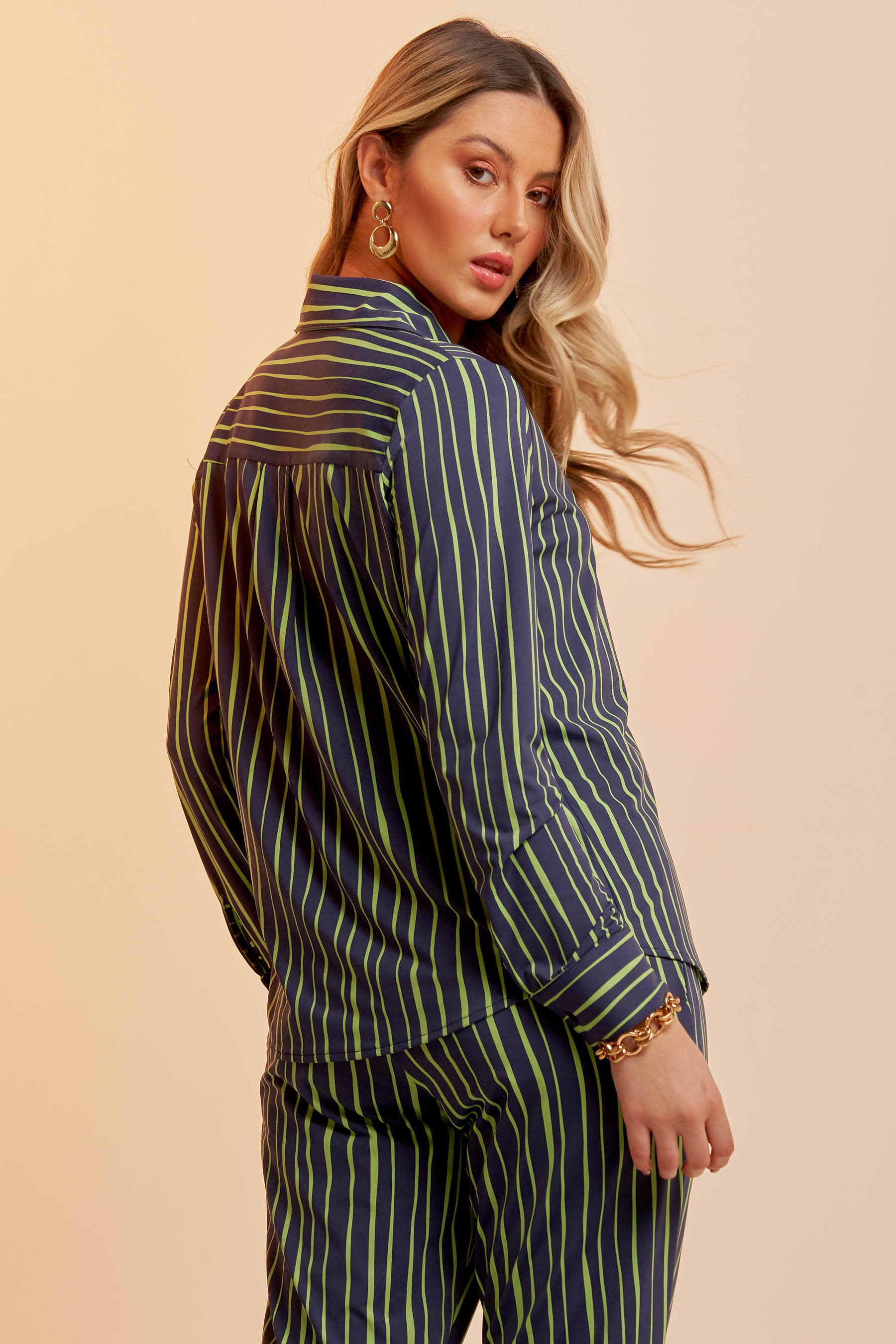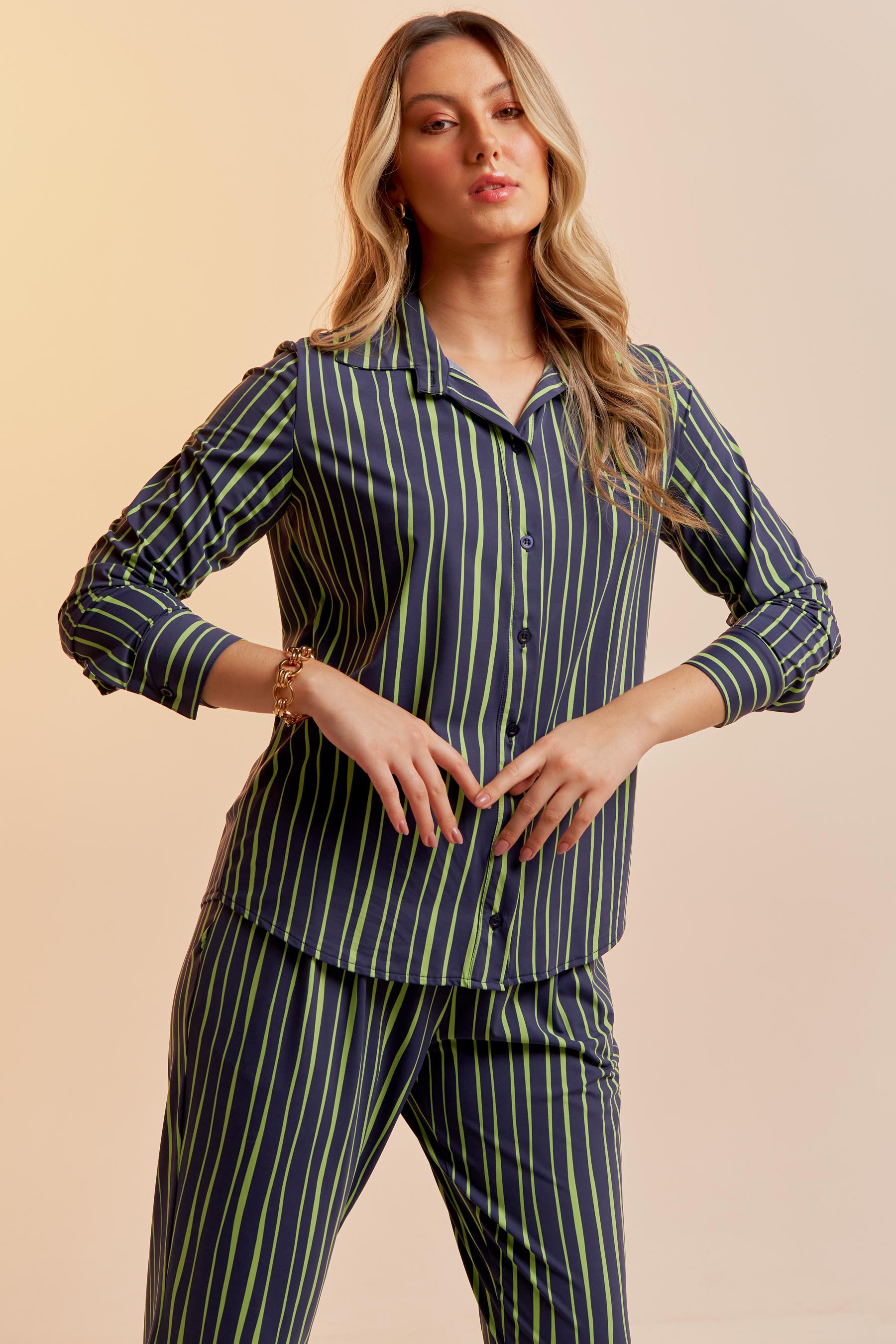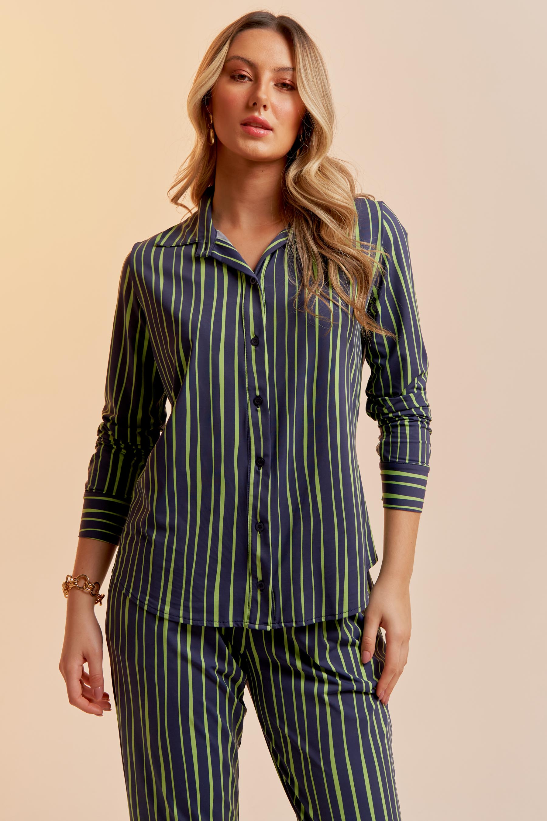 Camisa confeccionada em tecido de Fluity com estamparia exclusiva. Possui gola de camisa, manga comprida com punho e fechamento por botões frontais