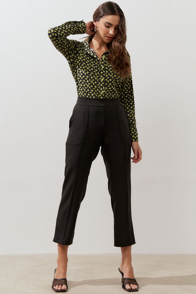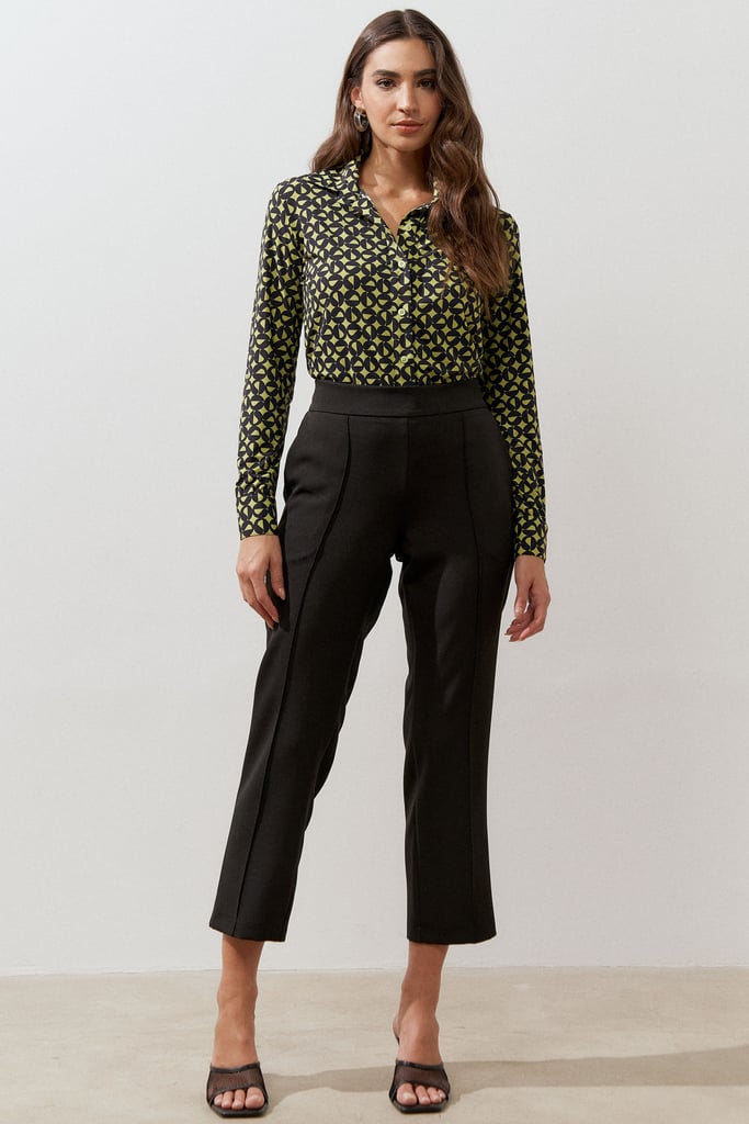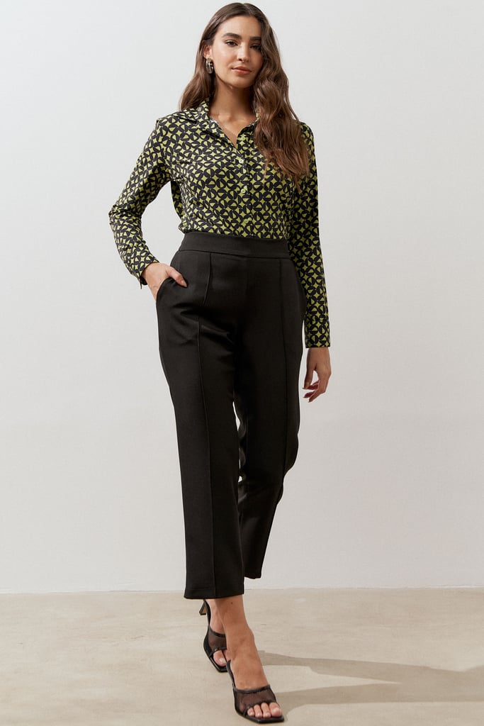 Calça confeccionada em tecido de crepe encorpado com elastano. Ela traz nossa modelagem clássica reta com nervura frontal, bolsos lateraise cós com elástico nas costas para maior conforto.