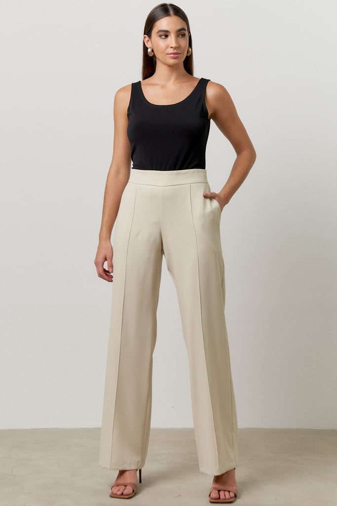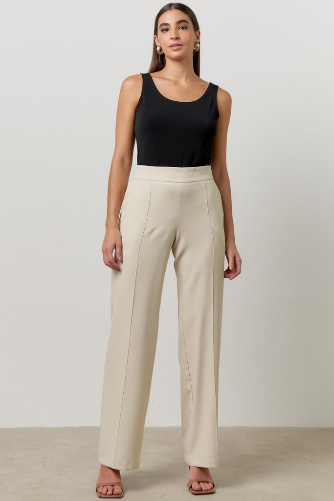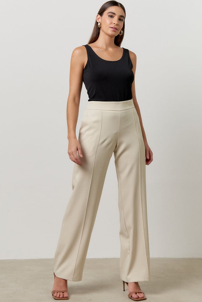 <!--td {borA calça wide é uma peça chique e super confortável, perfeita para compor diversos looks com tops lisos ou estampados. Confeccionada em crepe de alfaiataria, ela possui cintura alta com cós aplicado e elástico embutido nas costas para conforto e praticidade. Detalhe de prega frontal e bolso faca. Shape reto mais amplo.