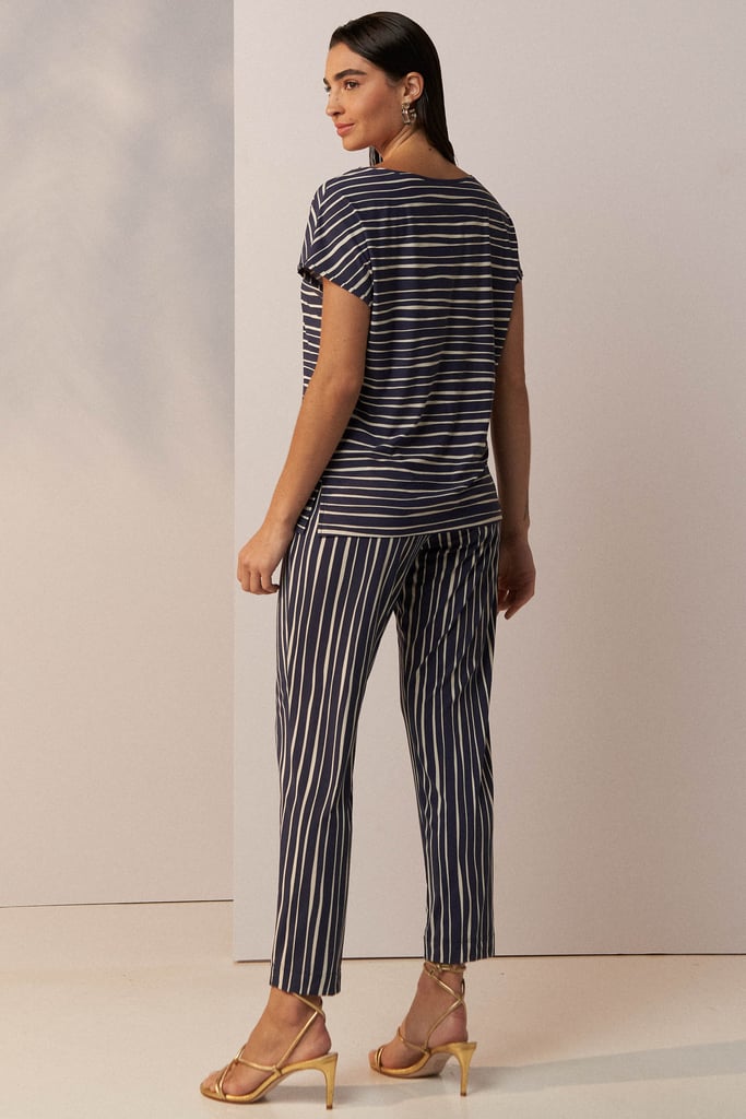 Confeccionado em tecido de malha Fluity, o conjunto é superconfortável, tem o toque geladinho e não amassa. A blusa possui decote redondo e manga curta. A calça traz nossa modelagem clássica reta com pregas frontais, bolsos laterais e cós com elástico embutido nas costas para maior conforto. A estampa é mais uma exclusividade Simple Life.