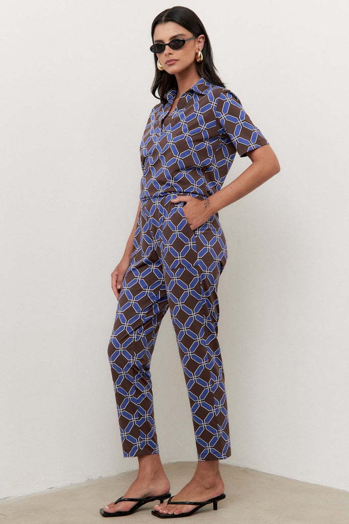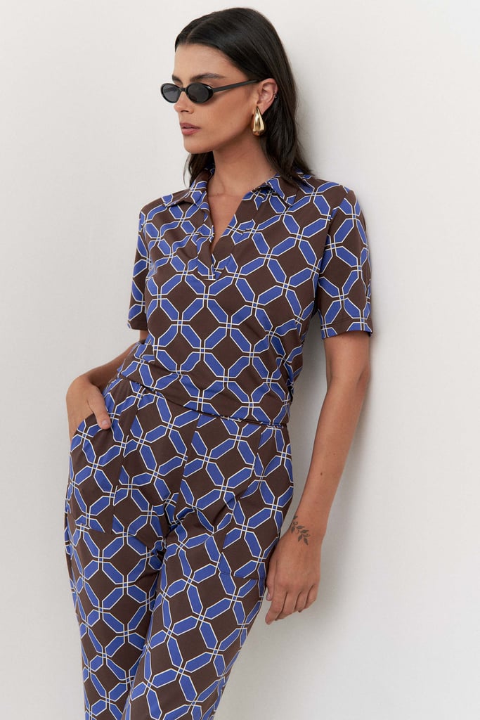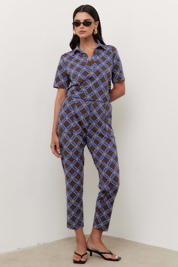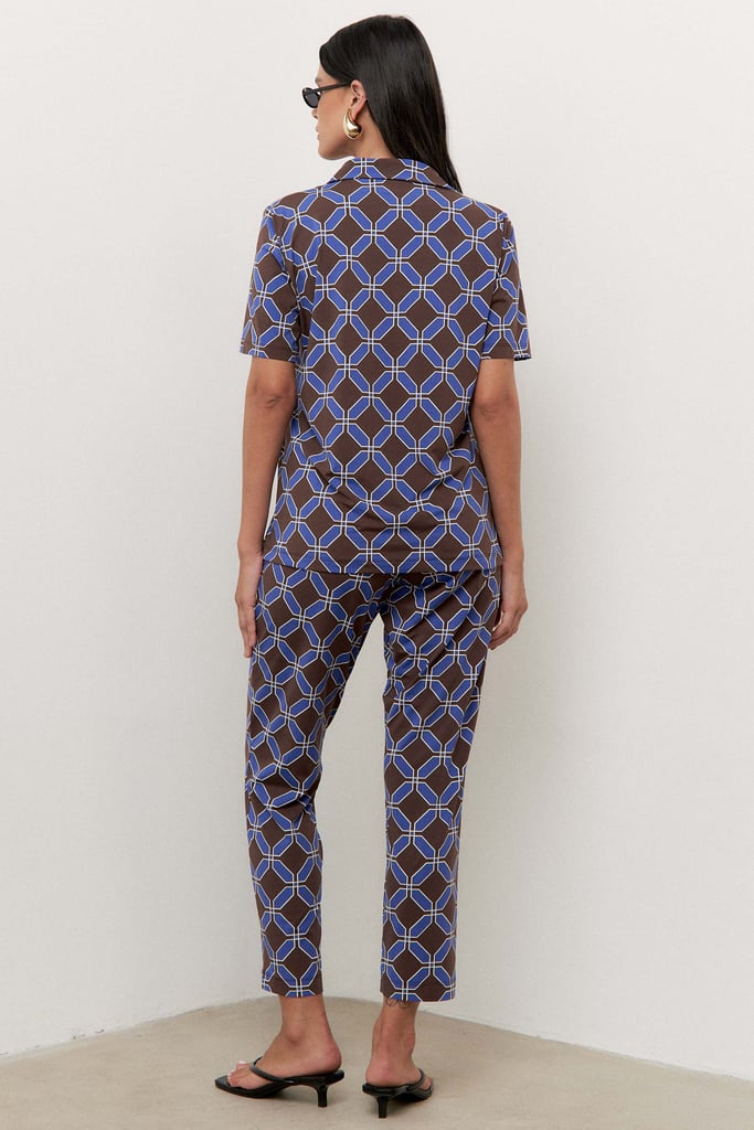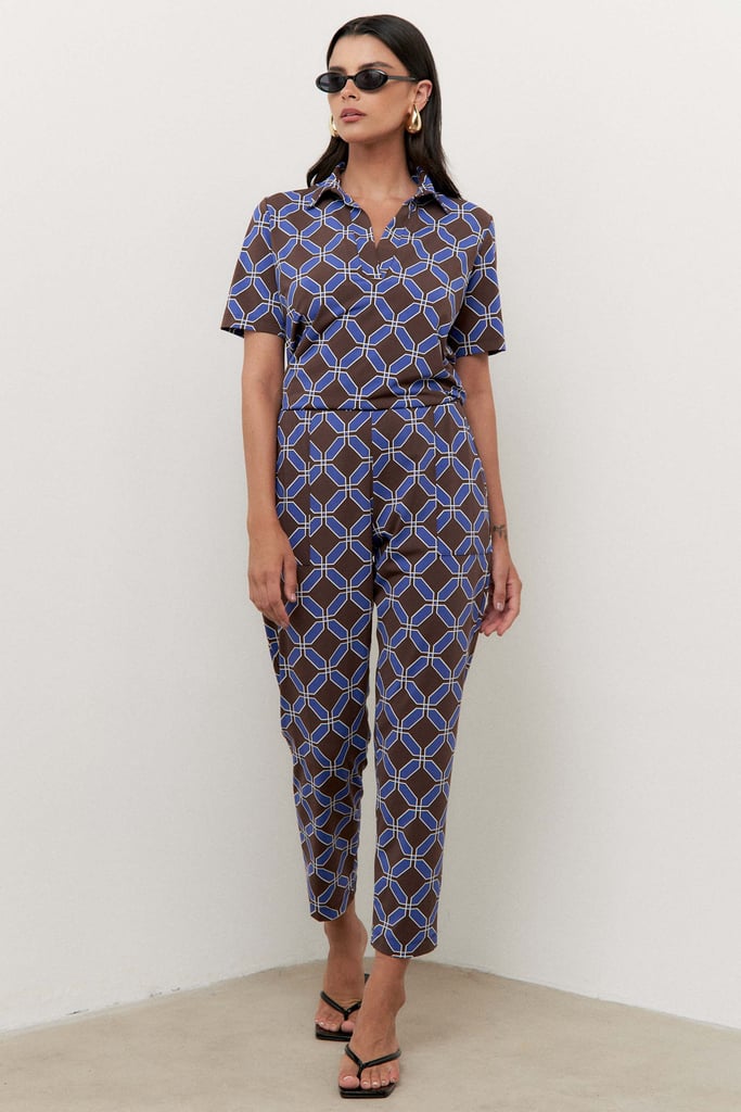 Confeccionado em tecido de malha Fluity, o conjunto é superconfortável, tem o toque geladinho e não amassa. A blusa possui gola de camisa, vista interrompida e manga curta. A calça traz nossa modelagem clássica reta com pregas frontais, bolsos laterais e cós com elástico embutido nas costas para maior conforto. A estampa é mais uma exclusividade Simple Life.