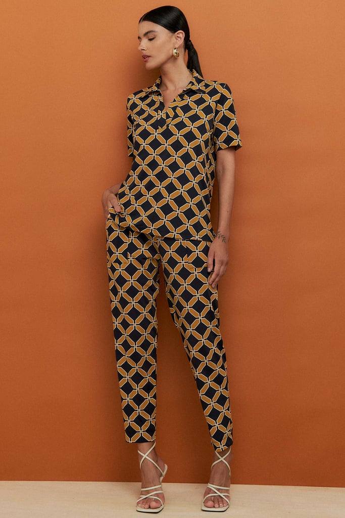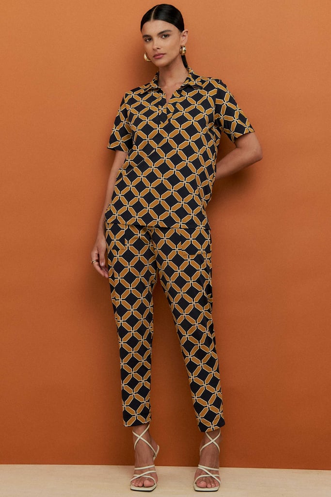 Confeccionado em tecido de malha Fluity, o conjunto é superconfortável, tem o toque geladinho e não amassa. A blusa possui gola de camisa, vista interrompida e manga curta. A calça traz nossa modelagem clássica reta com pregas frontais, bolsos laterais e cós com elástico embutido nas costas para maior conforto. A estampa é mais uma exclusividade Simple Life.