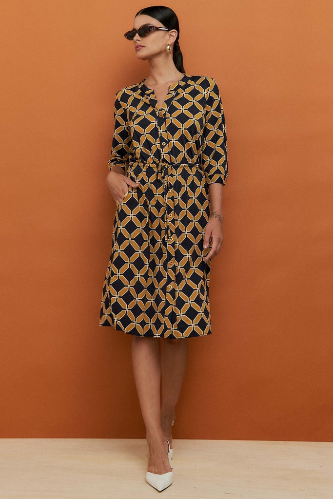 Confeccionado em tecido de malha Fluity, o vestido é super confortável, tem o toque geladinho e não amassa. Ele possui shape solto ao corpo com rolotê para ajuste na cintura, comprimento midi, fechamento frontal por botões, bolsos laterais e manga 3/4 com punho. A estampa é mais uma exclusividade Simple Life.
