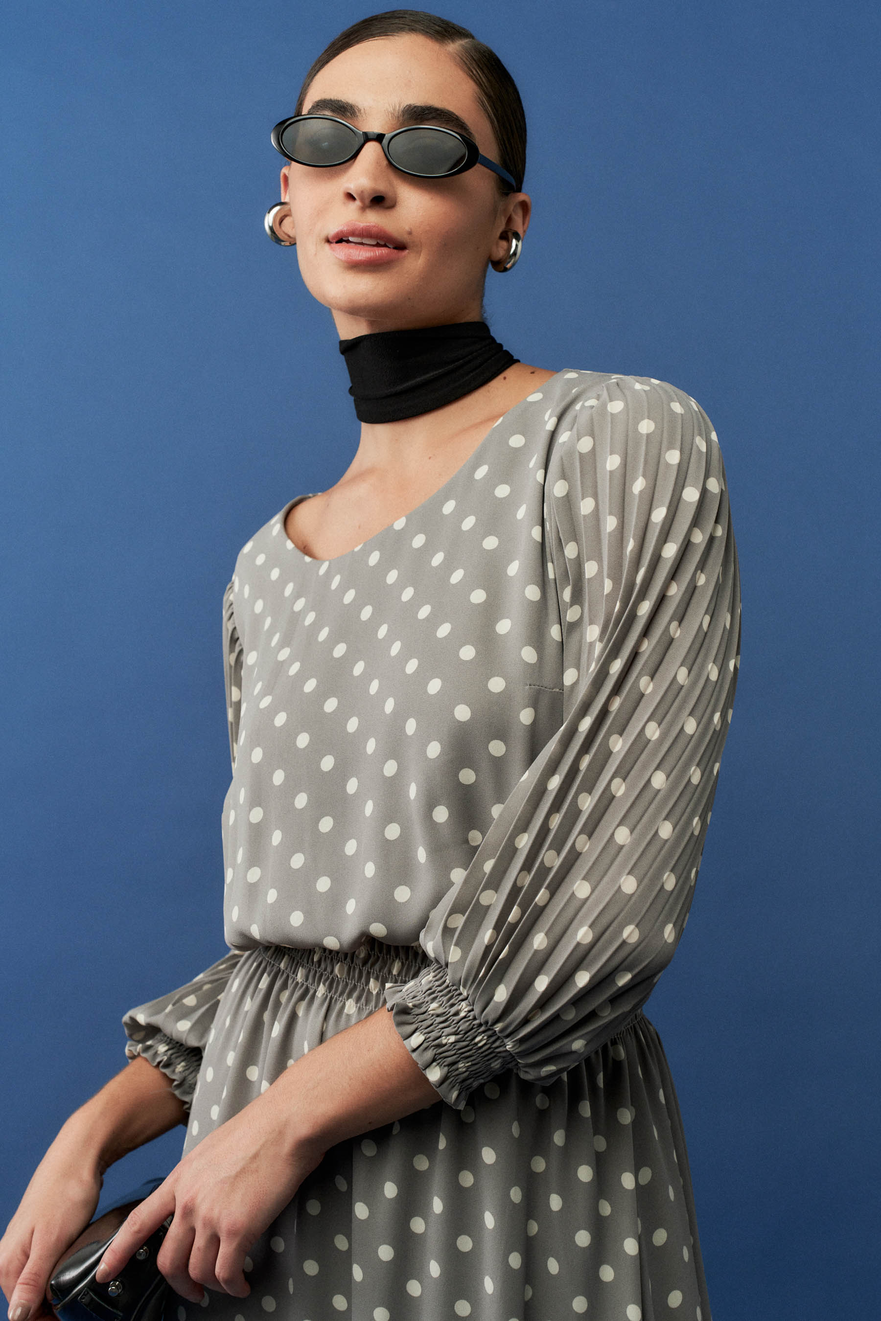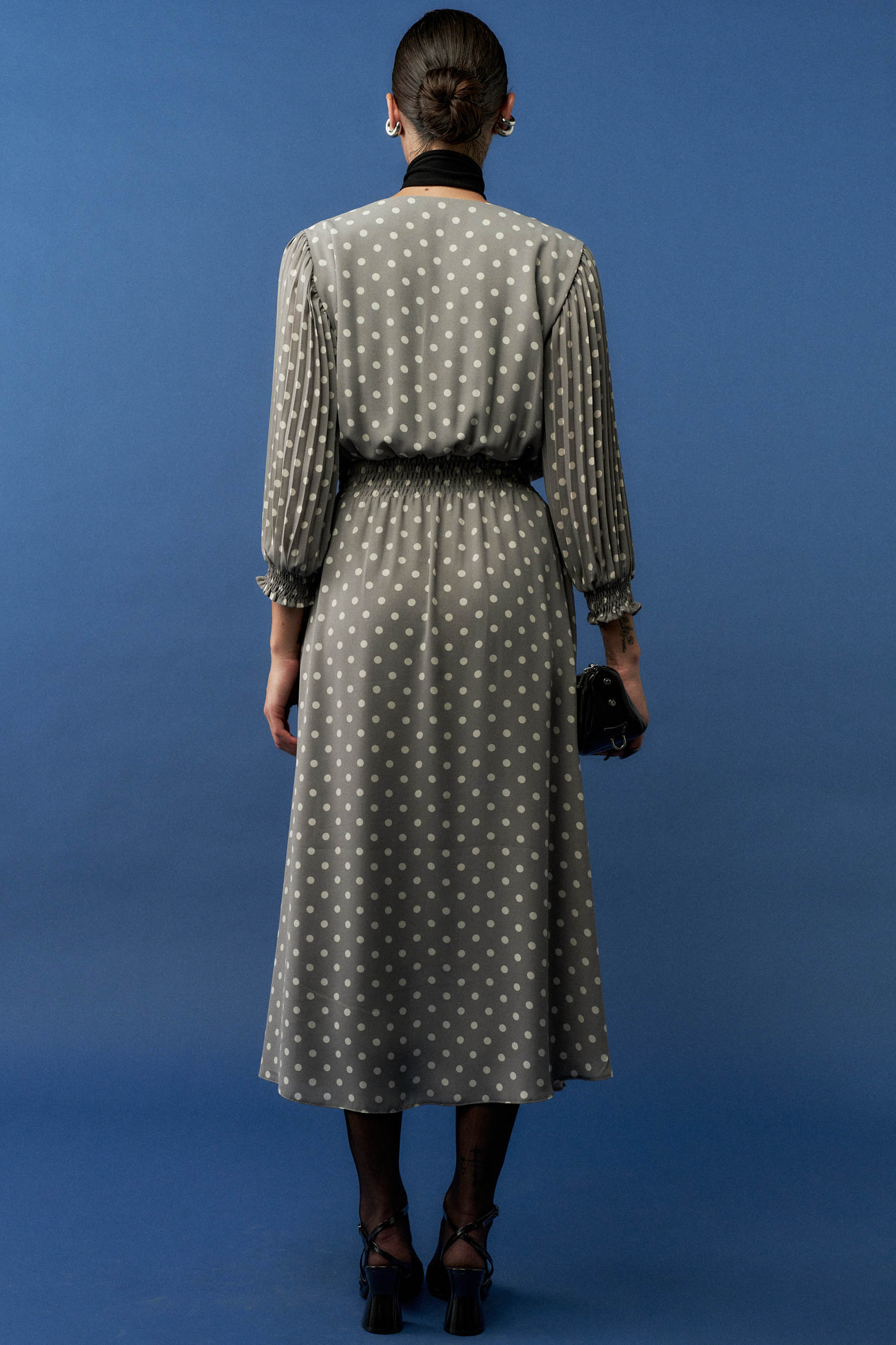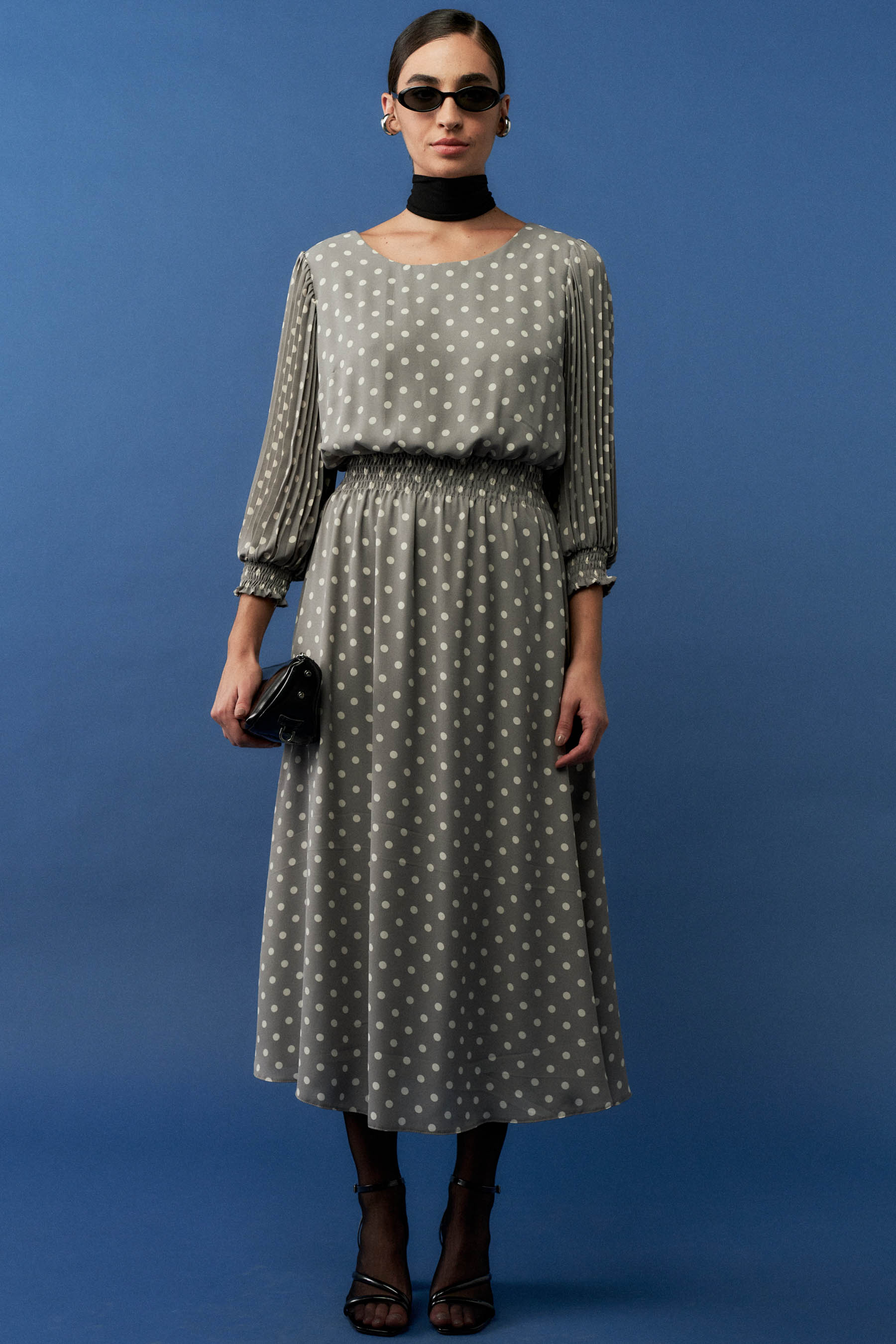 Vestido Poá Plissado