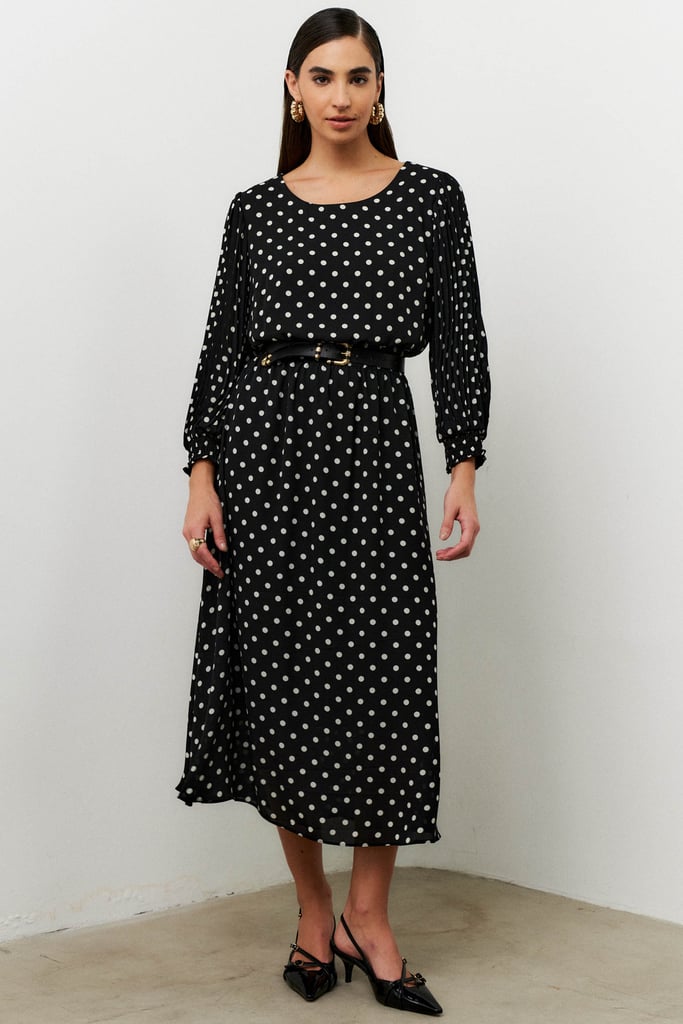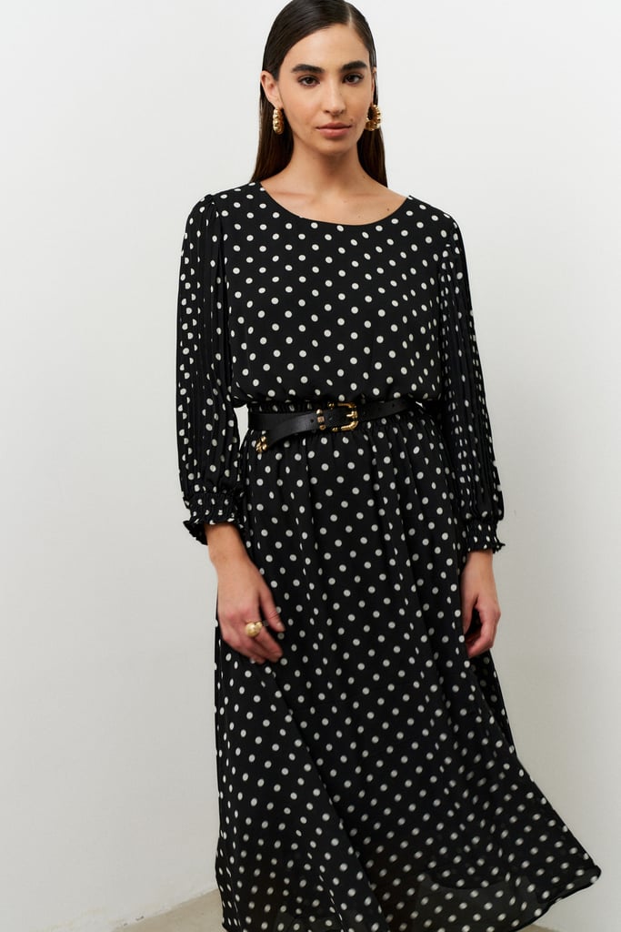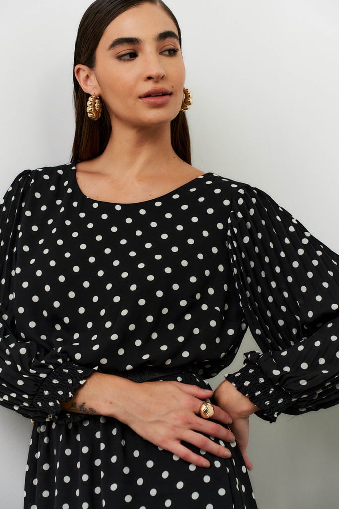Vestido Poá Plissado