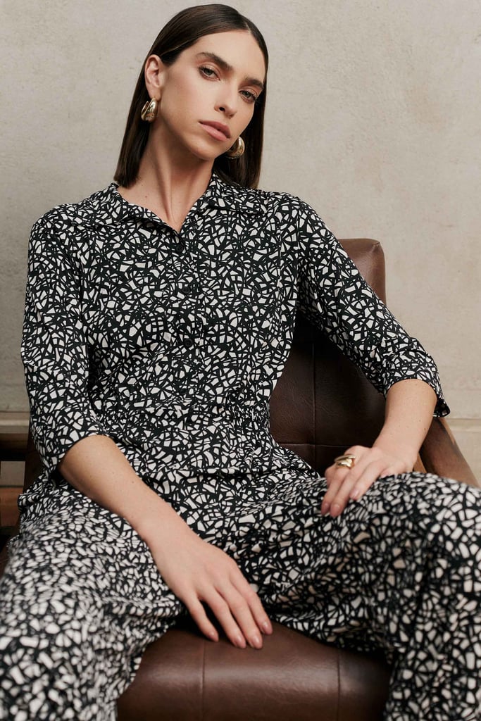 Confeccionado em tecido de malha Fluity, o macacão é superconfortável, tem o toque geladinho e não amassa. Possui gola, vista frontal interrompida com fechamento por botões, manga 3/4 e elástico na cintura para maior conforto. A estampa é mais uma exclusividade Simple Life.