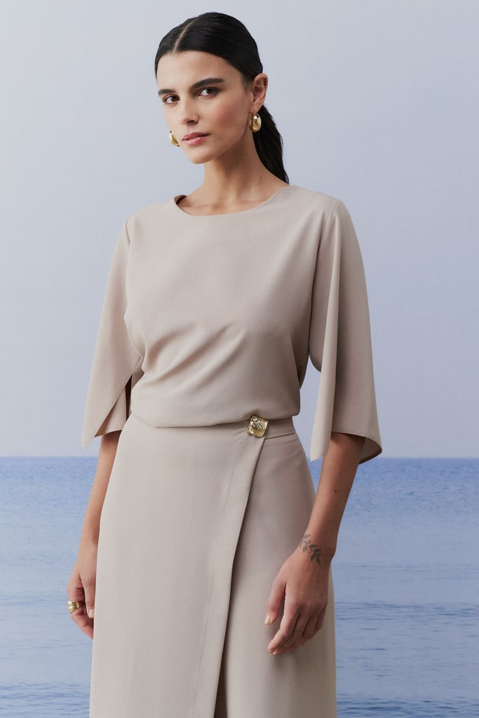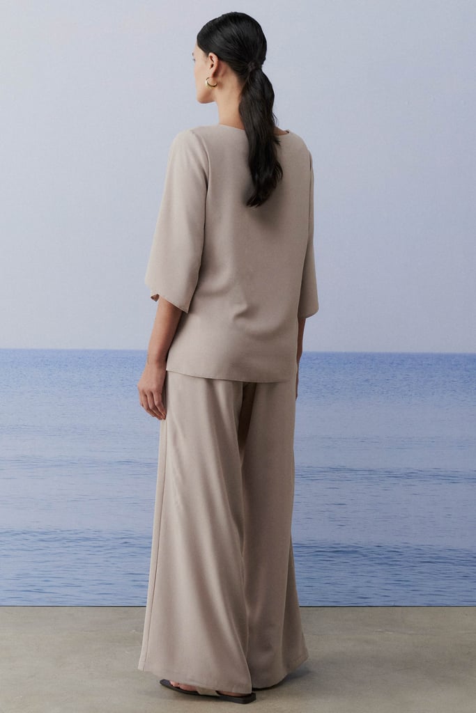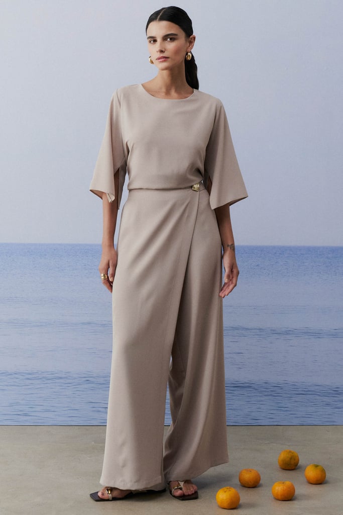Conjunto confeccionado em tecido de crepe, proporcionando leveza e sofisticação ao visual. A blusa apresenta decote redondo, que valoriza o colo de forma sutil, e mangas 3/4 com abertura, adicionando um toque moderno e elegante. A calça possui shape reto, alongando a silhueta, com detalhe de transpasse que traz um charme especial ao design. O cós com elástico na parte de trás garante conforto e melhor ajuste ao corpo, tornando o conjunto uma escolha prática e estilosa para diversas ocasiões.