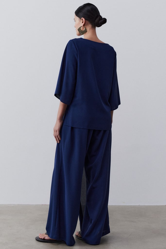 Conjunto confeccionado em tecido de crepe, proporcionando leveza e sofisticação ao visual. A blusa apresenta decote redondo, que valoriza o colo de forma sutil, e mangas 3/4 com abertura, adicionando um toque moderno e elegante. A calça possui shape reto, alongando a silhueta, com detalhe de transpasse que traz um charme especial ao design. O cós com elástico na parte de trás garante conforto e melhor ajuste ao corpo, tornando o conjunto uma escolha prática e estilosa para diversas ocasiões.