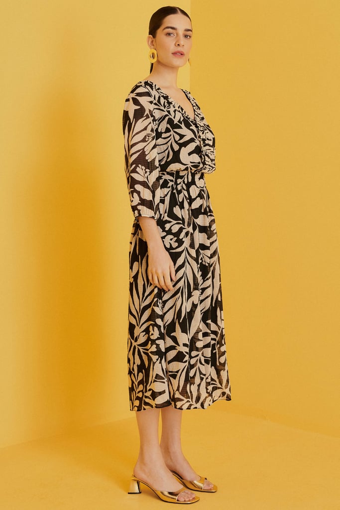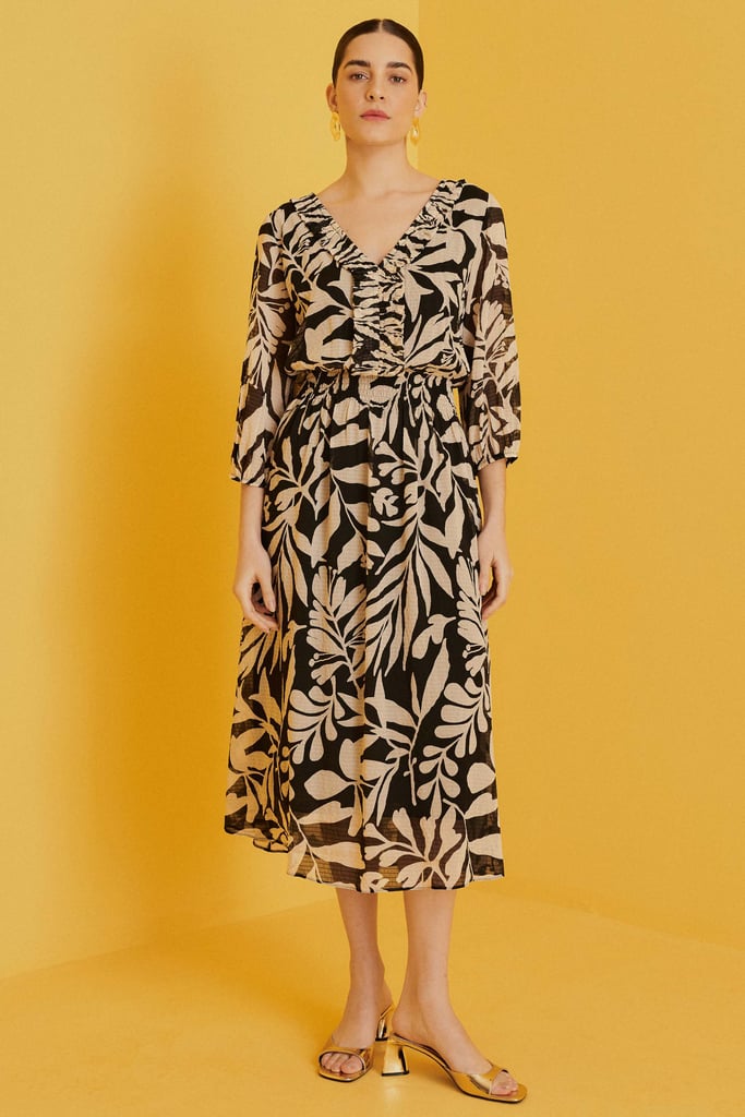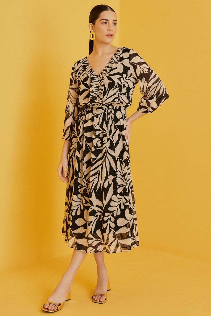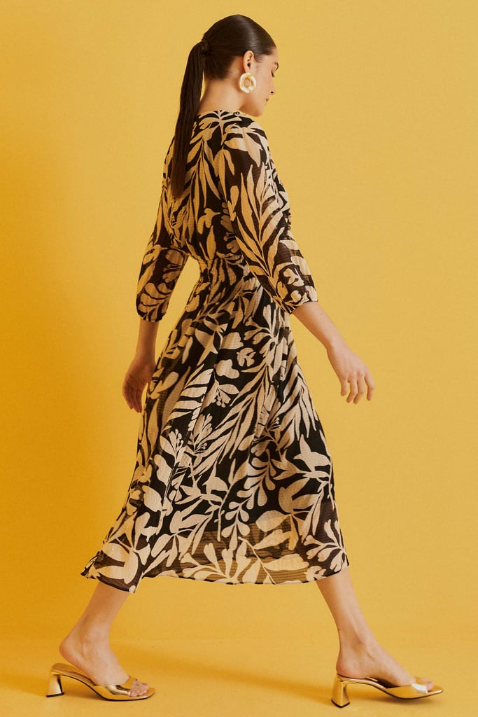 Vestido Midi em Chiffon com Efeito Enrugado