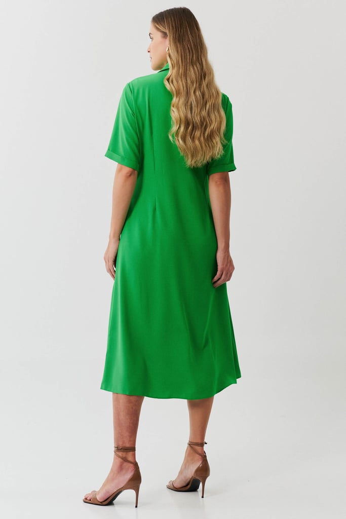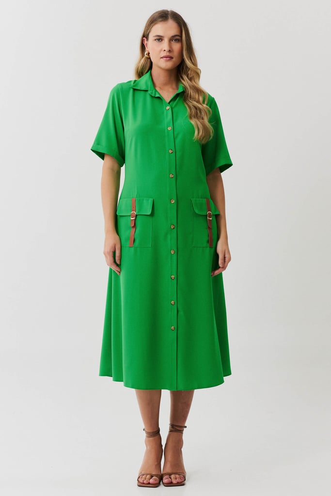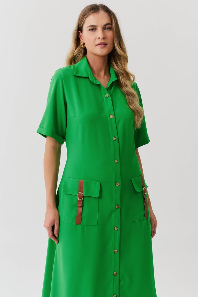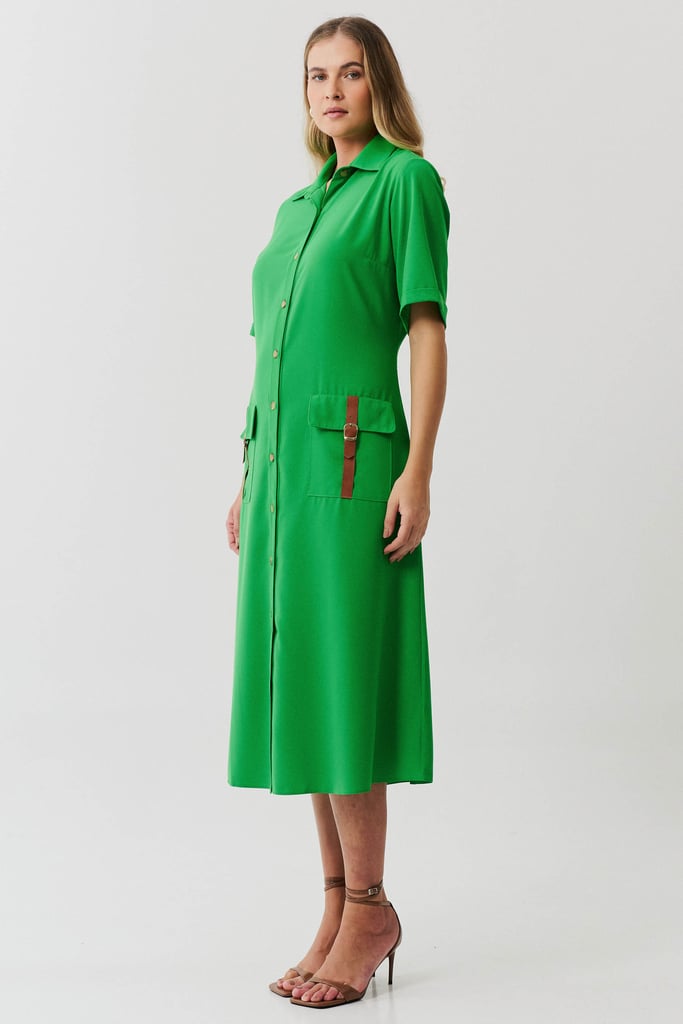 Esta chemise é ideal para compor um visual moderno e utilitário, com um toque de sofisticação. Confeccionada em crepe liso, a peça apresenta uma gola de camisa clássica que se harmoniza com a vista frontal fechada por botões, trazendo praticidade e um toque de formalidade. As mangas curtas com barra italiana adicionam um detalhe refinado, complementando o estilo clean e estruturado da chemise. Os bolsos frontais aplicados no estilo cargo reforçam o apelo utilitário da peça e são enriquecidos com detalhes em couro fake, que conferem um toque contemporâneo e diferenciado ao design. Com comprimento midi, esta chemise mantém uma proposta atemporal e é uma escolha perfeita para ocasiões que pedem um look elegante, mas com uma pegada despojada. Acompanha uma faixa do mesmo tecido para amarração na cintura, permitindo personalizar o ajuste e realçar a silhueta conforme desejado.