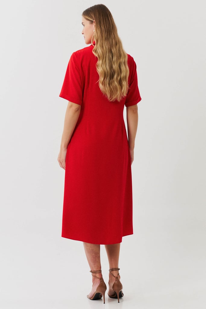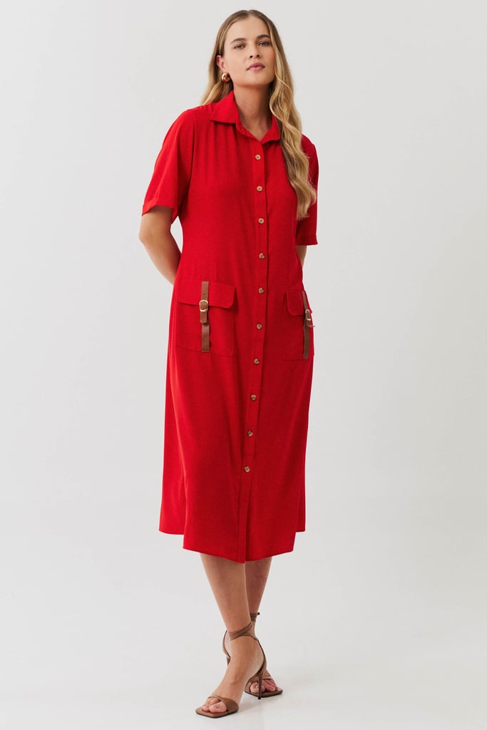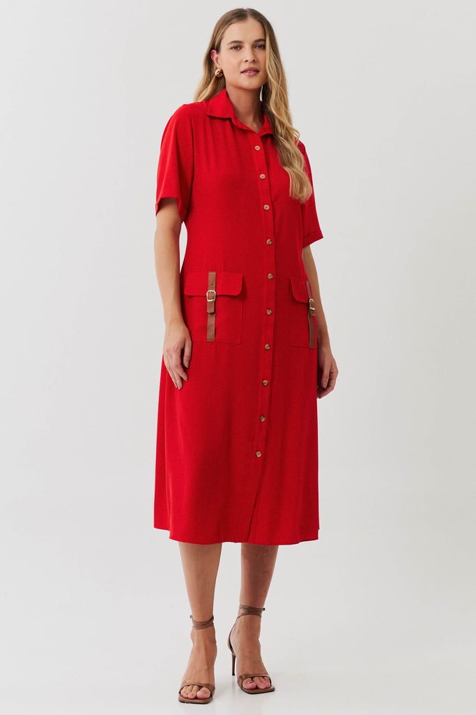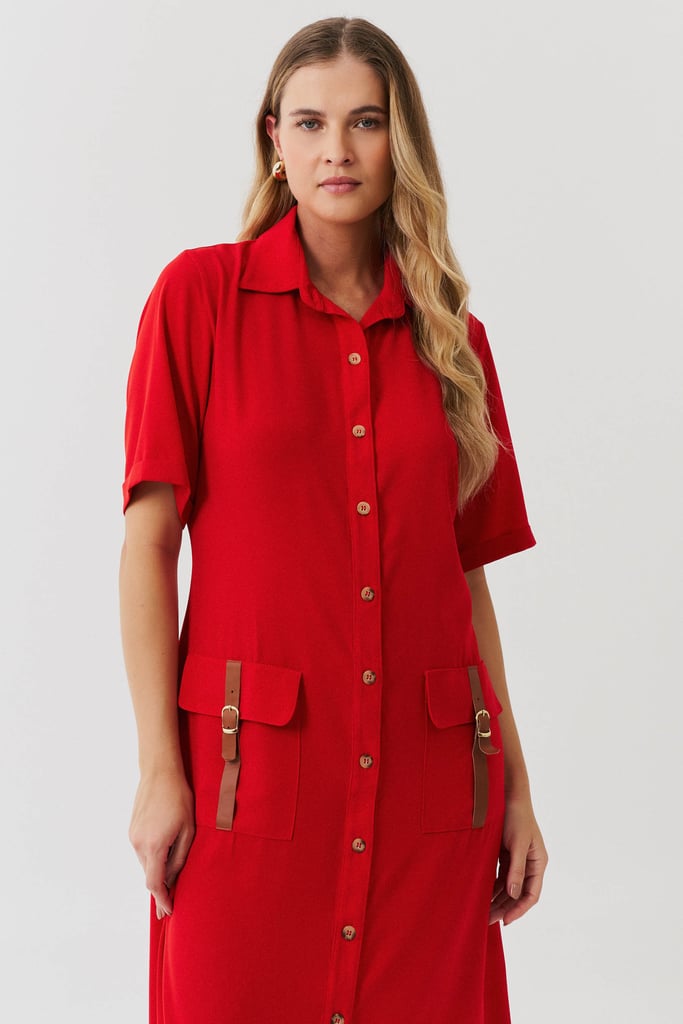Esta chemise é ideal para compor um visual moderno e utilitário, com um toque de sofisticação. Confeccionada em crepe liso, a peça apresenta uma gola de camisa clássica que se harmoniza com a vista frontal fechada por botões, trazendo praticidade e um toque de formalidade. As mangas curtas com barra italiana adicionam um detalhe refinado, complementando o estilo clean e estruturado da chemise. Os bolsos frontais aplicados no estilo cargo reforçam o apelo utilitário da peça e são enriquecidos com detalhes em couro fake, que conferem um toque contemporâneo e diferenciado ao design. Com comprimento midi, esta chemise mantém uma proposta atemporal e é uma escolha perfeita para ocasiões que pedem um look elegante, mas com uma pegada despojada. Acompanha uma faixa do mesmo tecido para amarração na cintura, permitindo personalizar o ajuste e realçar a silhueta conforme desejado.