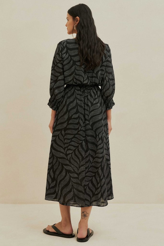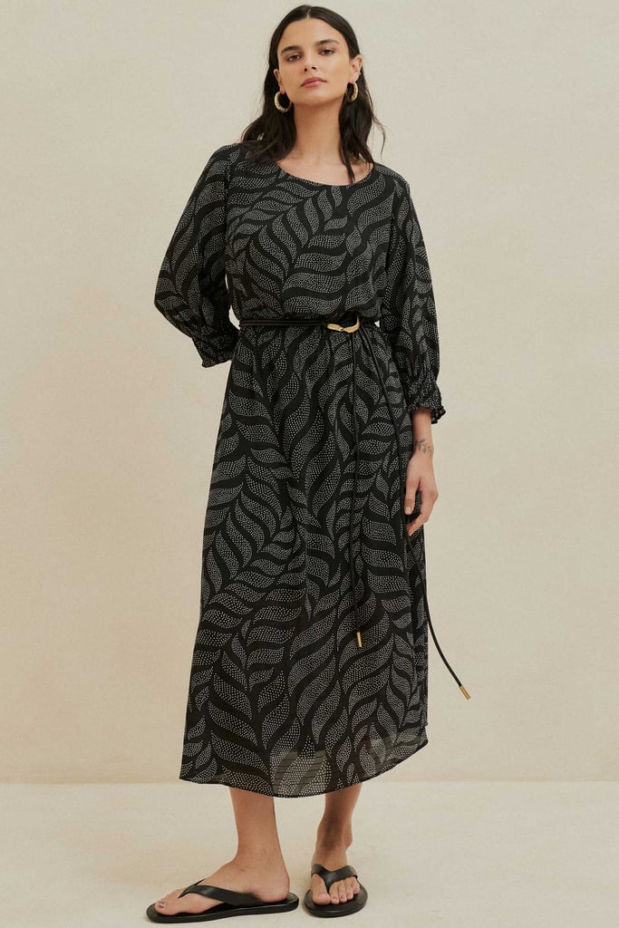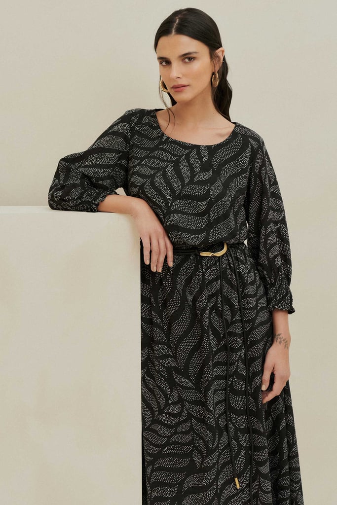 Vestido Midi Estampado em Chiffon Maquinetado