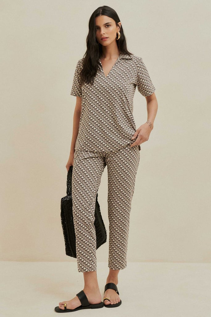 Este conjunto elegante é confeccionado em fluity, um tecido leve que não amassa, perfeito para garantir conforto e praticidade. A blusa possui decote em V, gola e mangas curtas, oferecendo um visual moderno e versátil. A calça apresenta uma modelagem reta com bolsos laterais tipo faca, proporcionando um ajuste confortável e funcional. O cós com elástico embutido nas costas adiciona praticidade ao look. A estampa exclusiva confere sofisticação, tornando o conjunto uma escolha ideal para diferentes ocasiões.