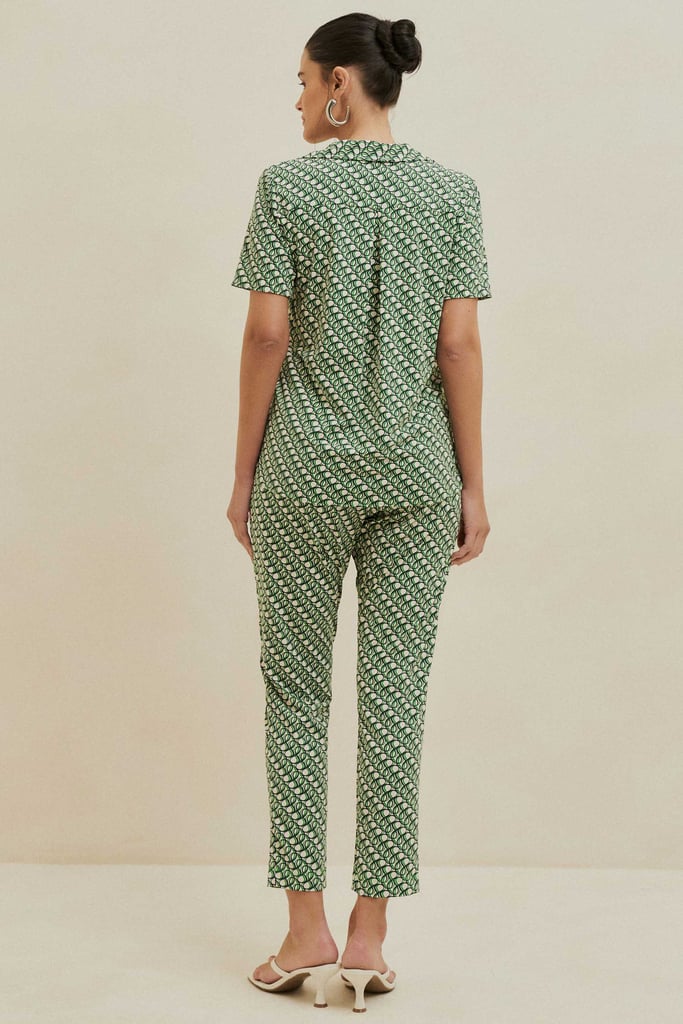Este conjunto elegante é confeccionado em fluity, um tecido leve que não amassa, perfeito para garantir conforto e praticidade. A blusa possui decote em V, gola e mangas curtas, oferecendo um visual moderno e versátil. A calça apresenta uma modelagem reta com bolsos laterais tipo faca, proporcionando um ajuste confortável e funcional. O cós com elástico embutido nas costas adiciona praticidade ao look. A estampa exclusiva confere sofisticação, tornando o conjunto uma escolha ideal para diferentes ocasiões.