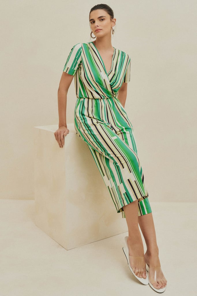 Este macacão, confeccionado em fluity, um tecido leve e que não amassa, é ideal para quem busca praticidade com estilo. A estampa exclusiva adiciona um toque moderno, enquanto o decote transpassado realça a silhueta. A cintura com elástico proporciona ajuste e conforto, complementada pelos bolsos laterais, que são perfeitos para o dia a dia. A calça estilo pantacourt, mais soltinha, garante um caimento fluido, tornando a peça fresca e confortável.