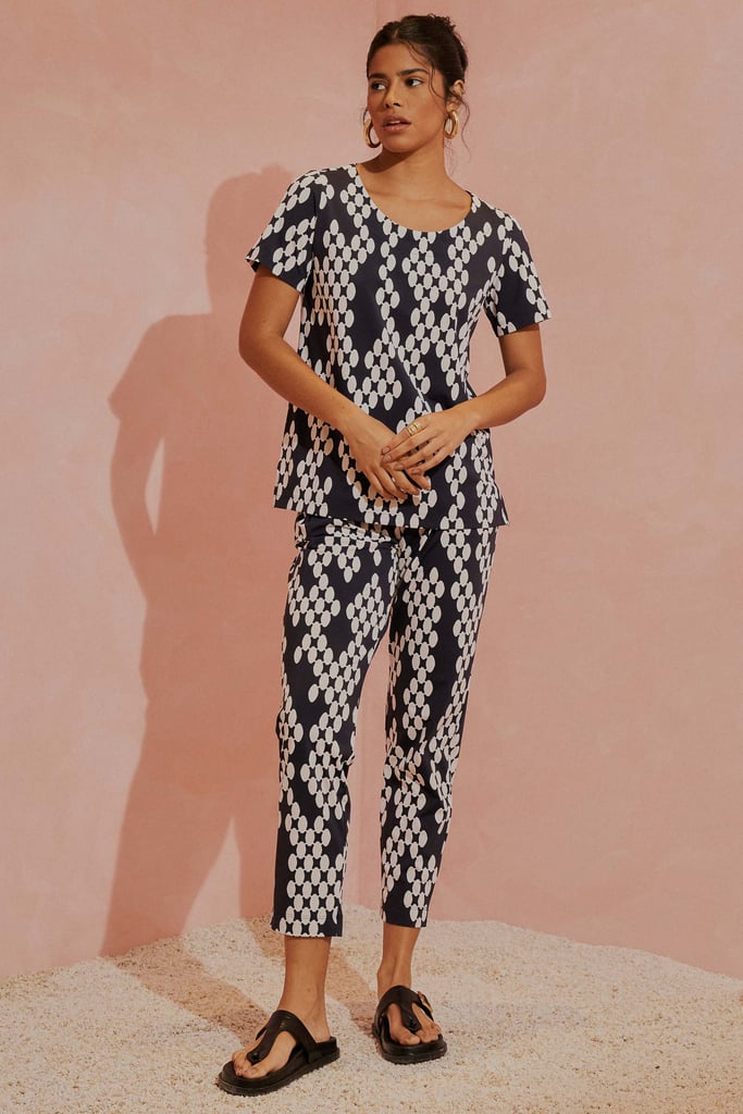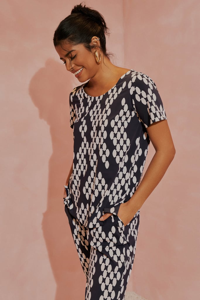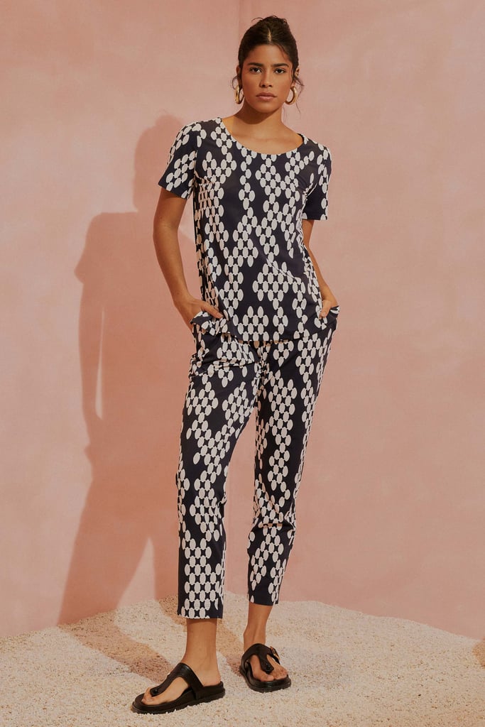Esse conjunto é a escolha perfeita para quem valoriza conforto e sofisticação. Feito em nosso queridinho tecido fluity, ele oferece uma sensação única de frescor sobre a pele, ideal para os dias mais quentes de verão e as celebrações de fim de ano. Além de ser extremamente leve e confortável, o fluity tem a vantagem de não amassar – ou seja, você estará impecável do começo ao fim do dia, sem precisar se preocupar com o caimento. A blusa apresenta um decote discreto e mangas curtas, mantendo a elegância e proporcionando liberdade de movimentos. A calça, com seu corte clássico, traz pregas frontais que adicionam um toque de sofisticação e ajudam a valorizar a silhueta. O cós conta com elástico na parte traseira, garantindo um ajuste perfeito e confortável para todos os momentos, além de bolsos laterais funcionais que trazem praticidade ao look. A estampa exclusiva é sofisticada e atemporal, combinando facilmente com outras peças do seu guarda-roupa e permitindo criar diversas combinações para diferentes ocasiões. Esse é o conjunto que abraça a sua essência, valorizando seu estilo com conforto e praticidade. Seja para uma viagem, uma confraternização ou um jantar de fim de ano, ele traz a leveza e a elegância que você merece, mantendo-se fiel à nossa tradição de qualidade e bom gosto.