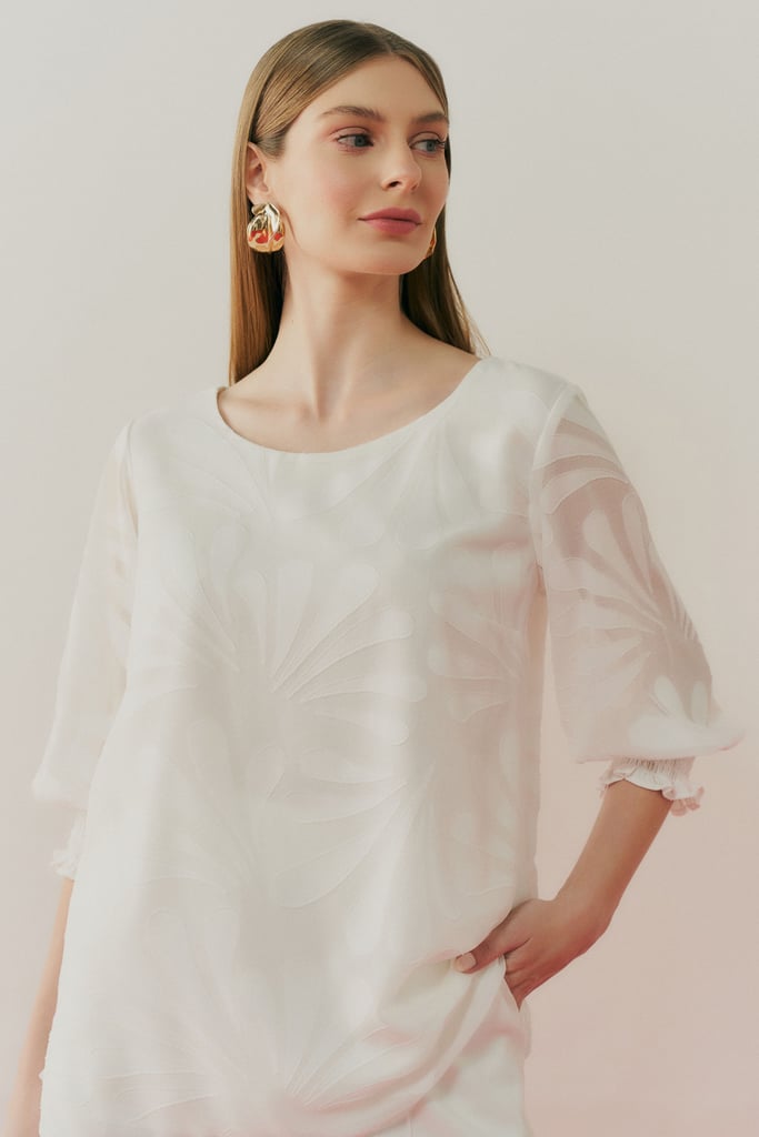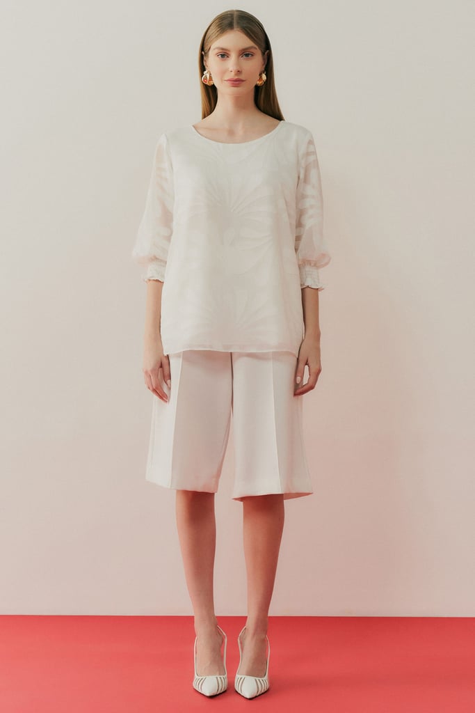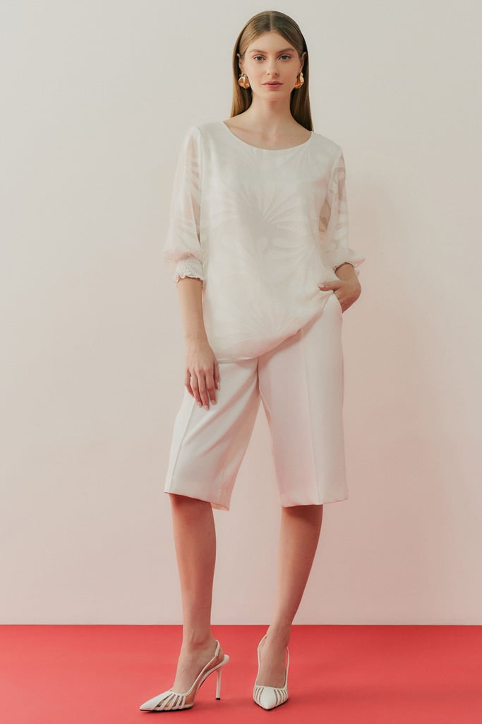 Esta blusa em chiffon devorê é uma peça elegante e delicada, ideal para compor looks sofisticados e atemporais. O tecido devorê, com desenhos sutis, cria uma leve transparência que confere charme e refinamento ao visual. Para maior conforto e discrição, a blusa é completamente forrada, garantindo um acabamento impecável. Com decote redondo e mangas 3/4, a blusa apresenta um caimento suave e fluido. As mangas são finalizadas com um delicado detalhe em lastex, adicionando um toque de feminilidade e diferenciando o modelo com uma textura sofisticada. Perfeita para combinar com calças de alfaiataria ou saias, esta blusa é uma escolha versátil para mulheres que buscam sofisticação e leveza em qualquer ocasião.