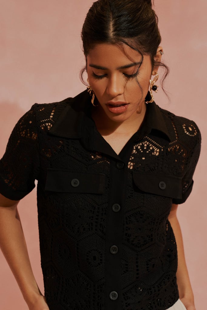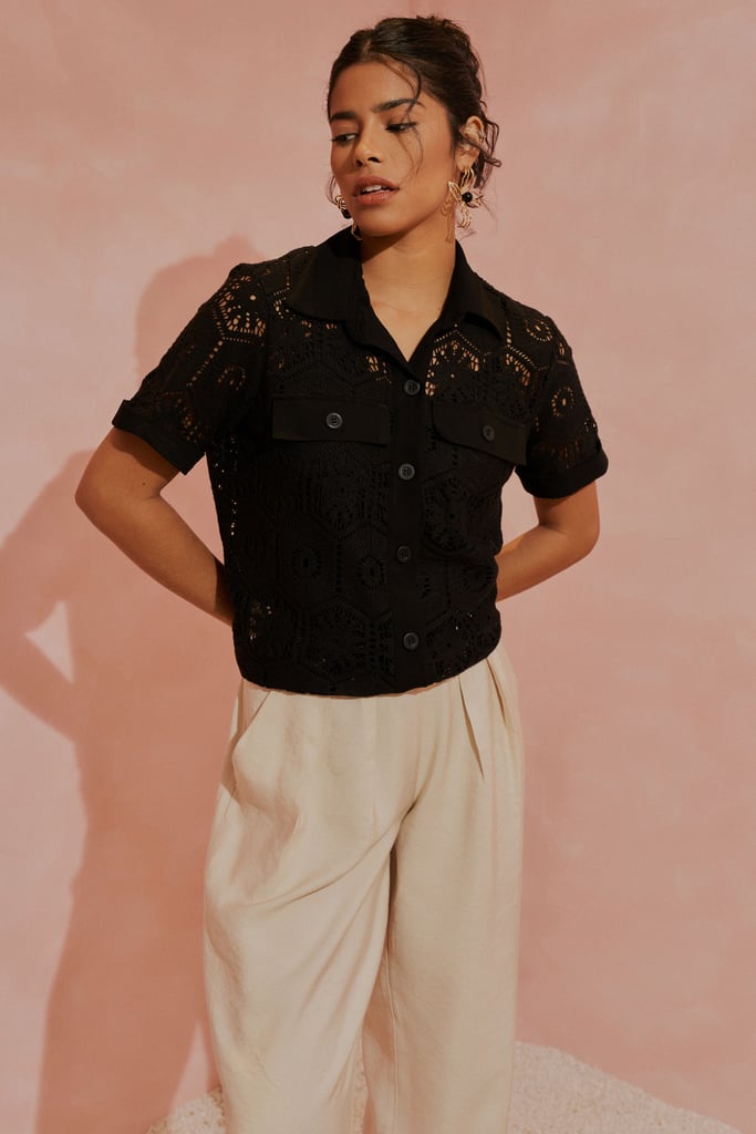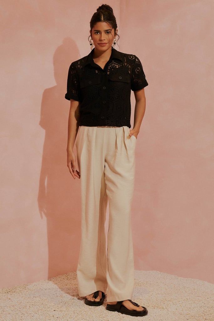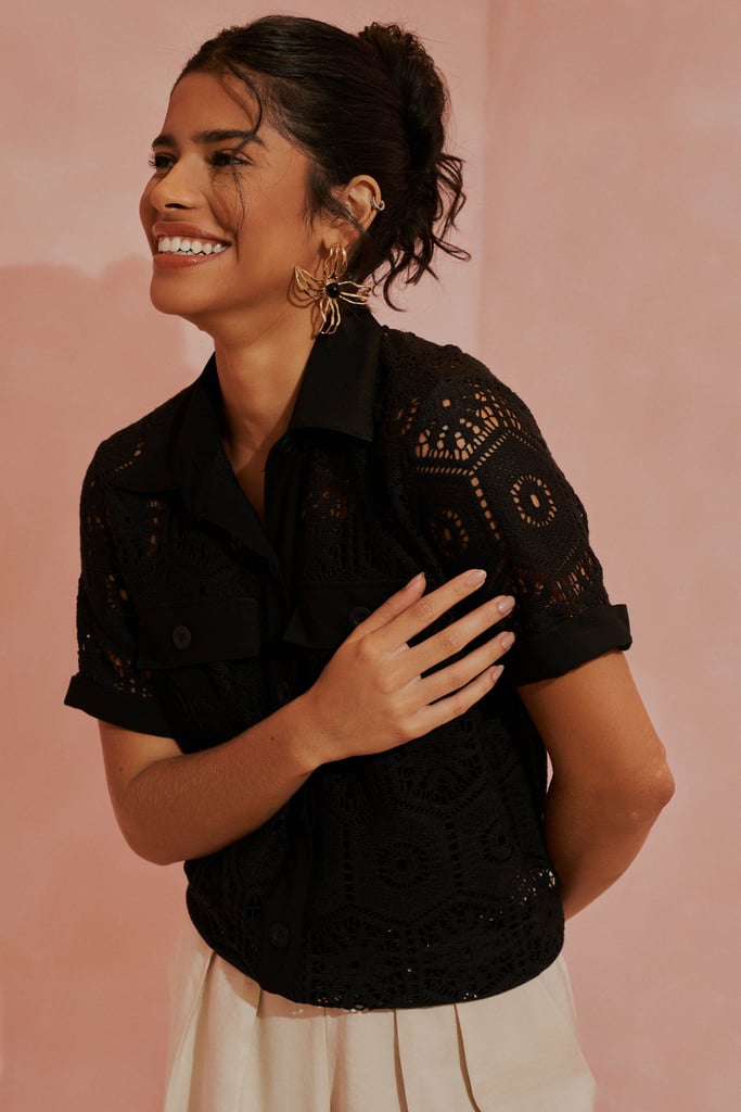 Esta camisa rendada é a escolha ideal para mulheres que apreciam o artesanato em alta e buscam versatilidade com sofisticação. Confeccionada em uma renda delicada, a peça combina perfeitamente com ambientes urbanos e praianos, permitindo combinações que vão desde uma sobreposição com um maiô ou biquíni até o uso com uma anágua para o dia a dia. O design inclui uma frente abotoada que facilita o uso e adiciona um charme clássico à peça. Os bolsos aplicados no busto, embora decorativos, enriquecem o visual com sutileza, mantendo o foco na delicadeza da renda. As mangas curtas são finalizadas com um acabamento italiano, um detalhe refinado que eleva a sofisticação do modelo. Com um toque artesanal que traduz elegância e contemporaneidade, esta camisa é a expressão perfeita de estilo e versatilidade para qualquer ocasião.