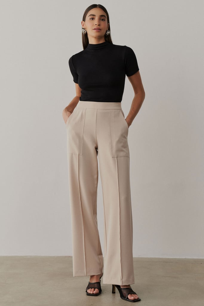 Confeccionada em crepe de alfaiataria, esta calça combina design clássico com detalhes funcionais e elegantes. Sua modelagem reta proporciona um caimento impecável, enquanto os bolsos frontais sobrepostos e a nervura frontal adicionam um toque de sofisticação e estilo. A peça também conta com bolsos traseiros e um cós com elástico nas costas, garantindo conforto e praticidade sem perder a elegância. Ideal para compor looks versáteis e atemporais, esta calça é perfeita tanto para o dia a dia quanto para ocasiões que pedem um toque de sofisticação. Sua versatilidade a torna uma escolha certeira para o ambiente de trabalho, combinando conforto e estilo de forma impecável.